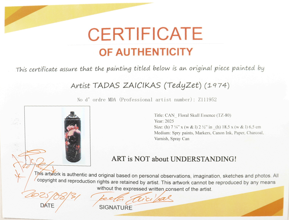 Spray can measures approximately 8" in height. Hand-signed by the artist, Tadas Zaicikas.