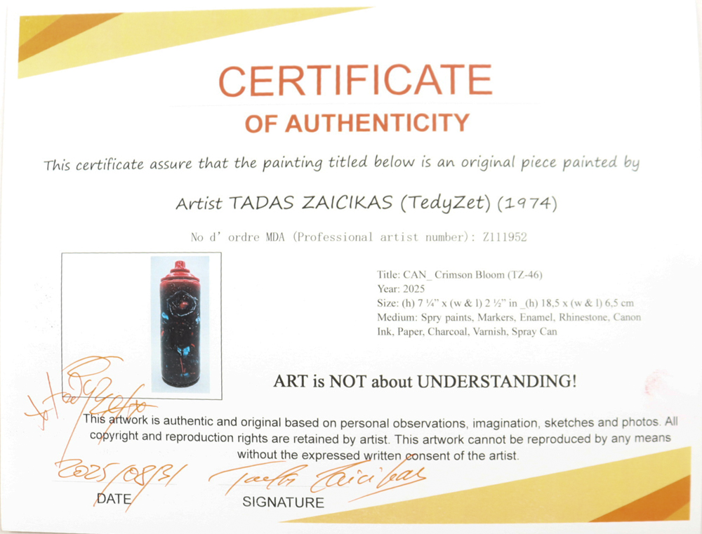 Spray can measures approximately 8" in height. Hand-signed by the artist, Tadas Zaicikas.