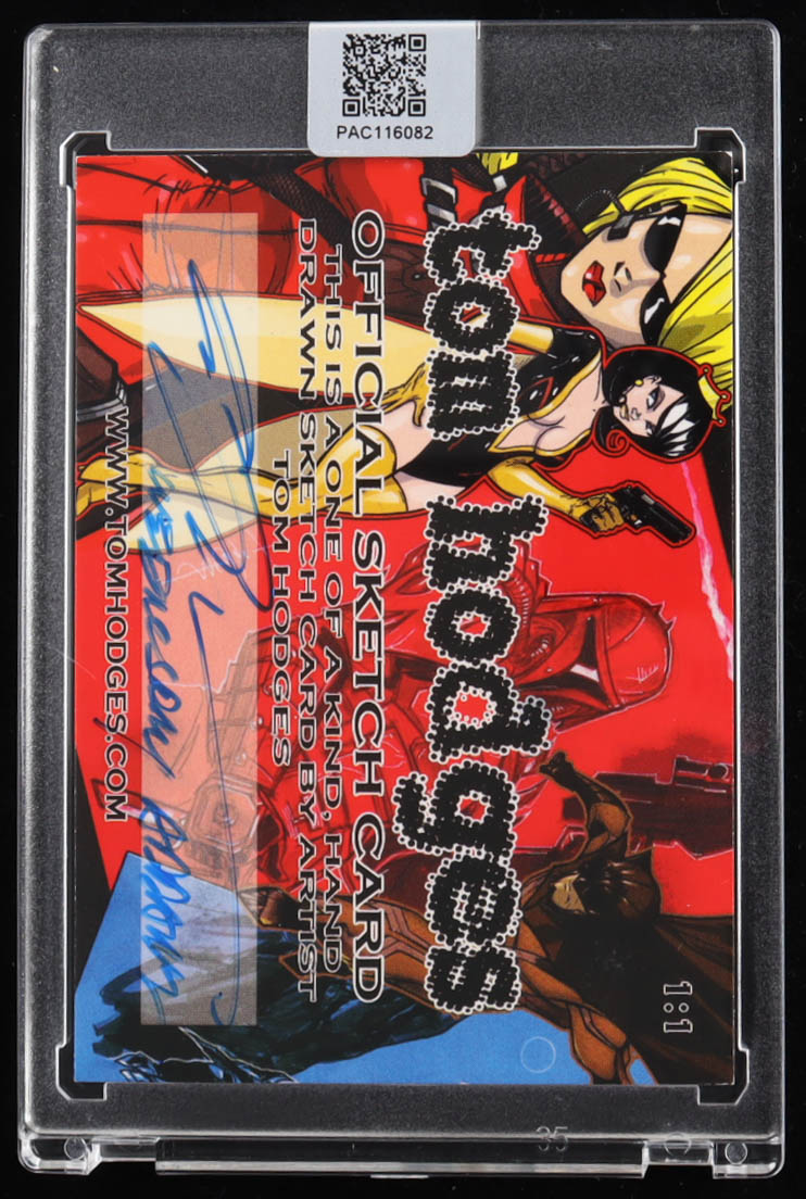 This original sketch card includes original art by renowned comic book artist, Tom Hodges. Also includes a character name inscription on the back by the artist.