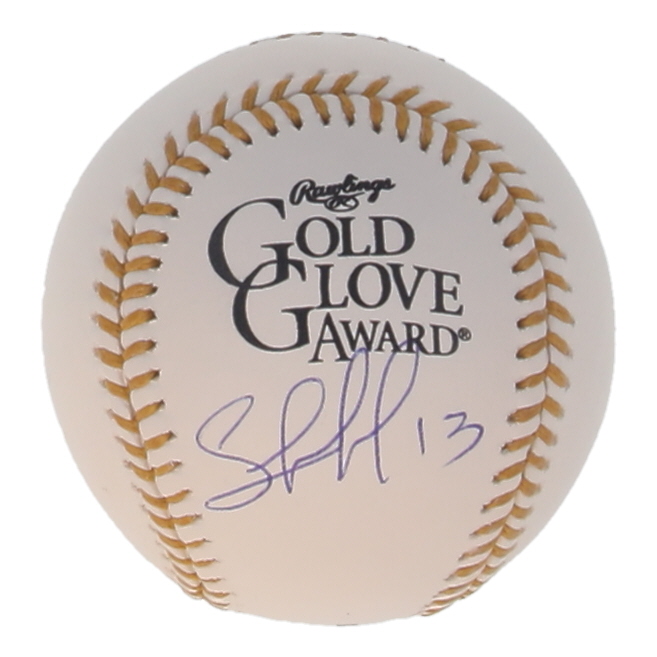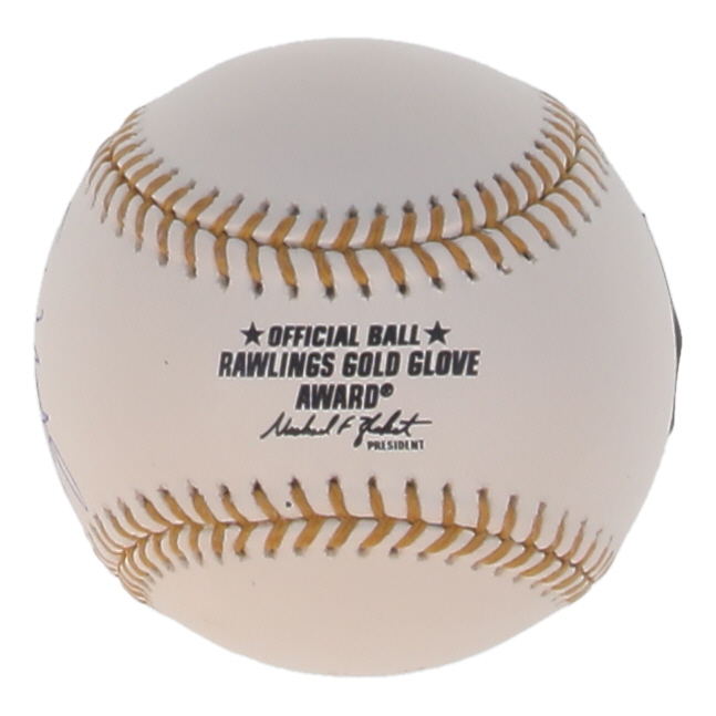 Rawlings Official Gold Glove Award Logo Baseball. Hand-signed by Salvador Perez (Kansas City Royals).