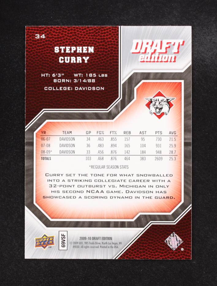 Stephen Curry 2009-10 Upper Deck Draft Edition #34 SP RC