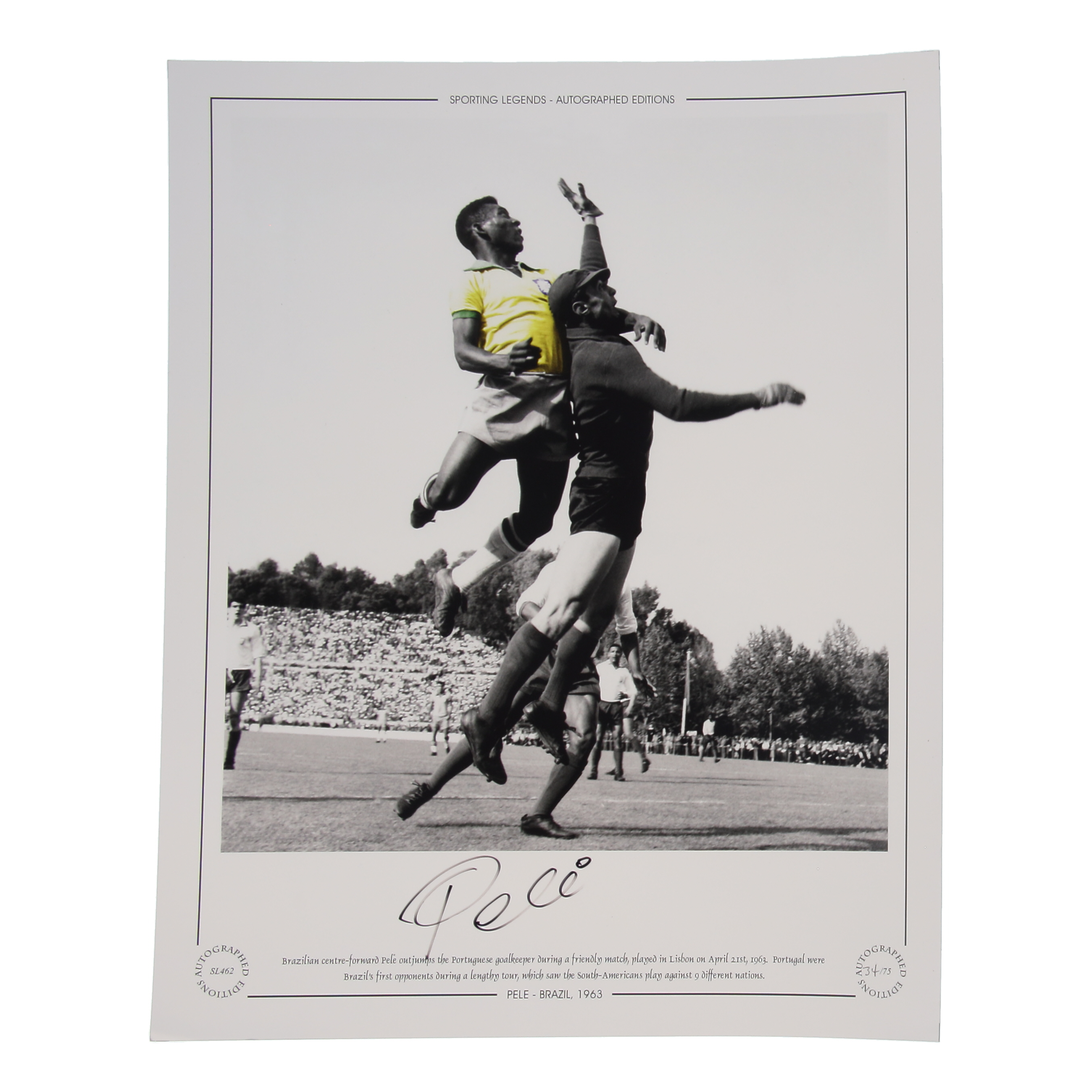 Print measures 16" x 20" in size. Hand-signed by Pele (HOF). Limited edition hand-numbered #34/75.