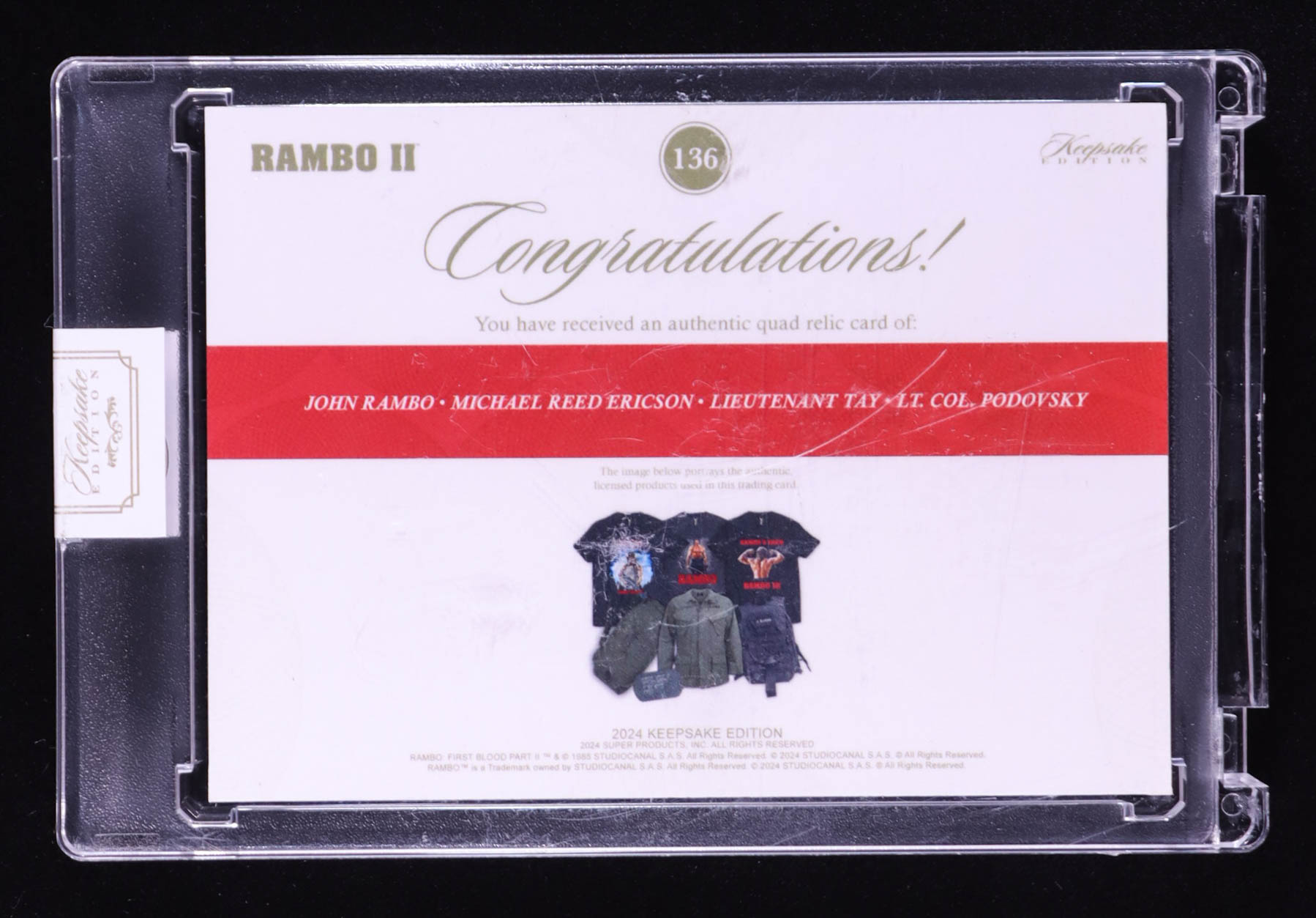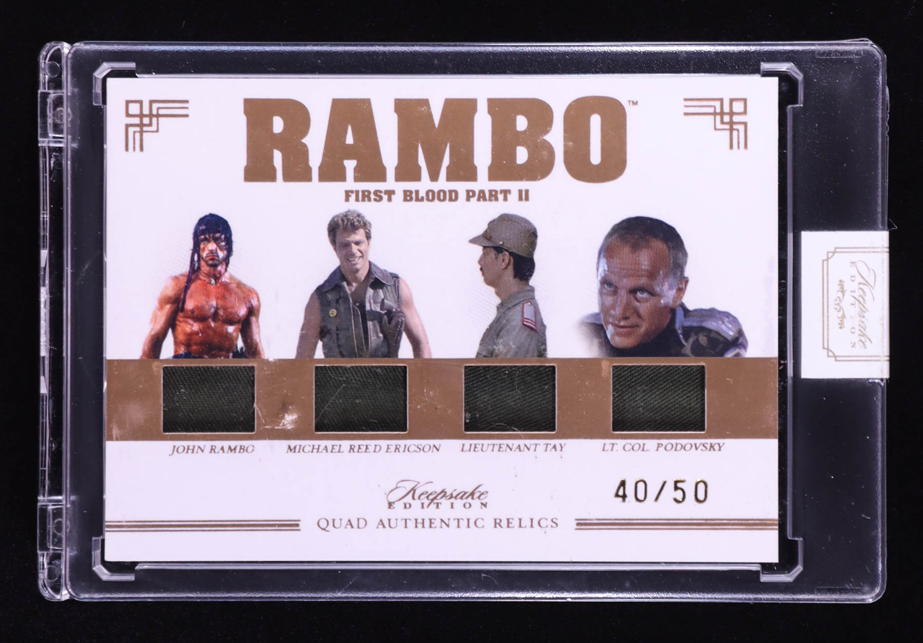 John Rambo/Michael Reed Ericson/Lieutenant Tay/Lt. Col Podovsky 2024 Keepsake Edition Quad Relic Authentic Rambo II #136 #40/50