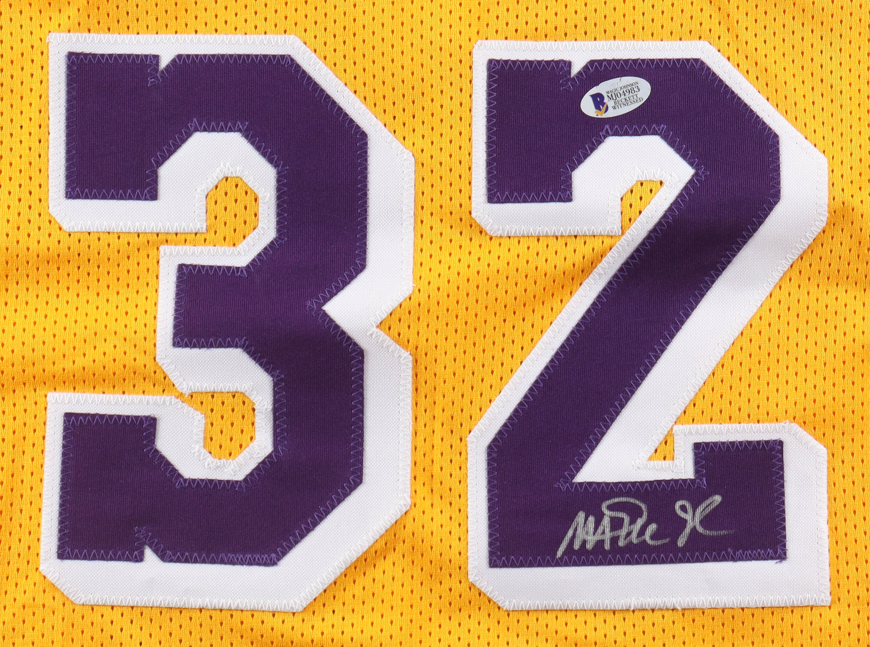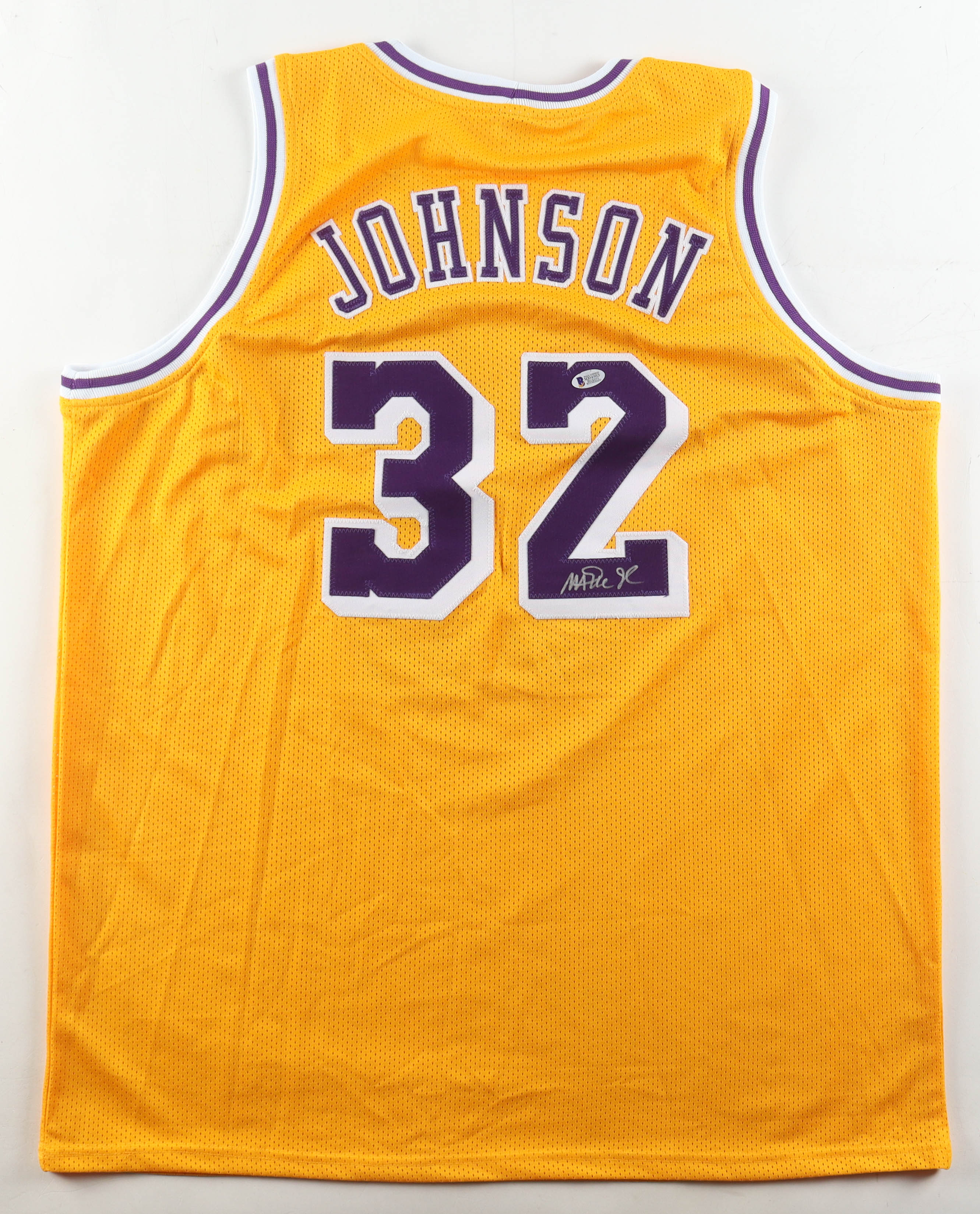 Custom jersey with everything sewn on, size XL. Hand-signed by Magic Johnson (HOF).