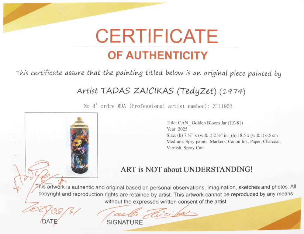 "Golden Bloom Jar" Original Spray Can Art by Tadas Zaicikas | TedyZet (Zaicikas)