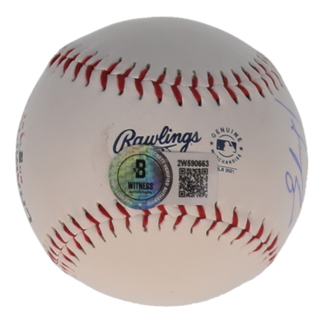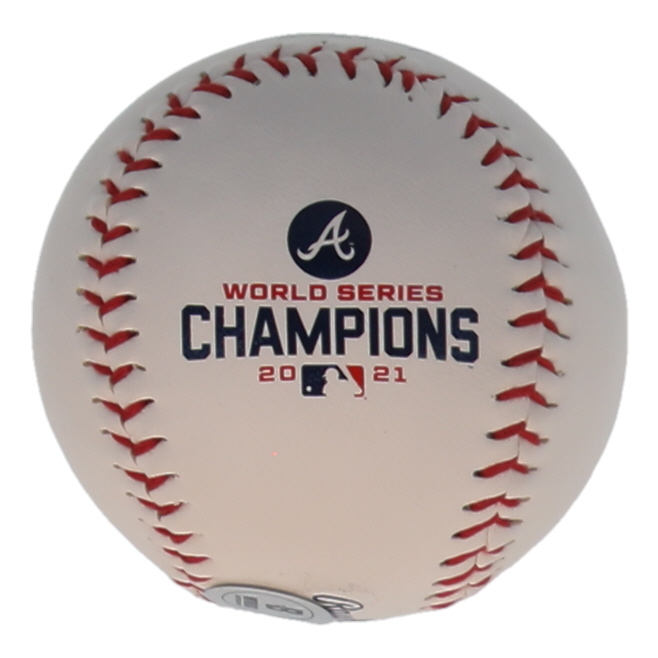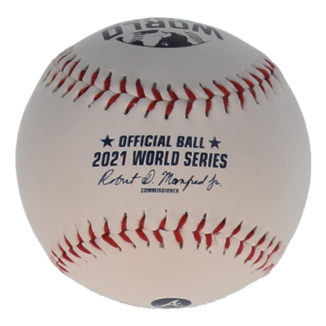 Rawlings Official 2021 World Series Baseball. Hand-signed by Austin Riley (Atlanta Braves). Please note, there are stains throughout the baseball.