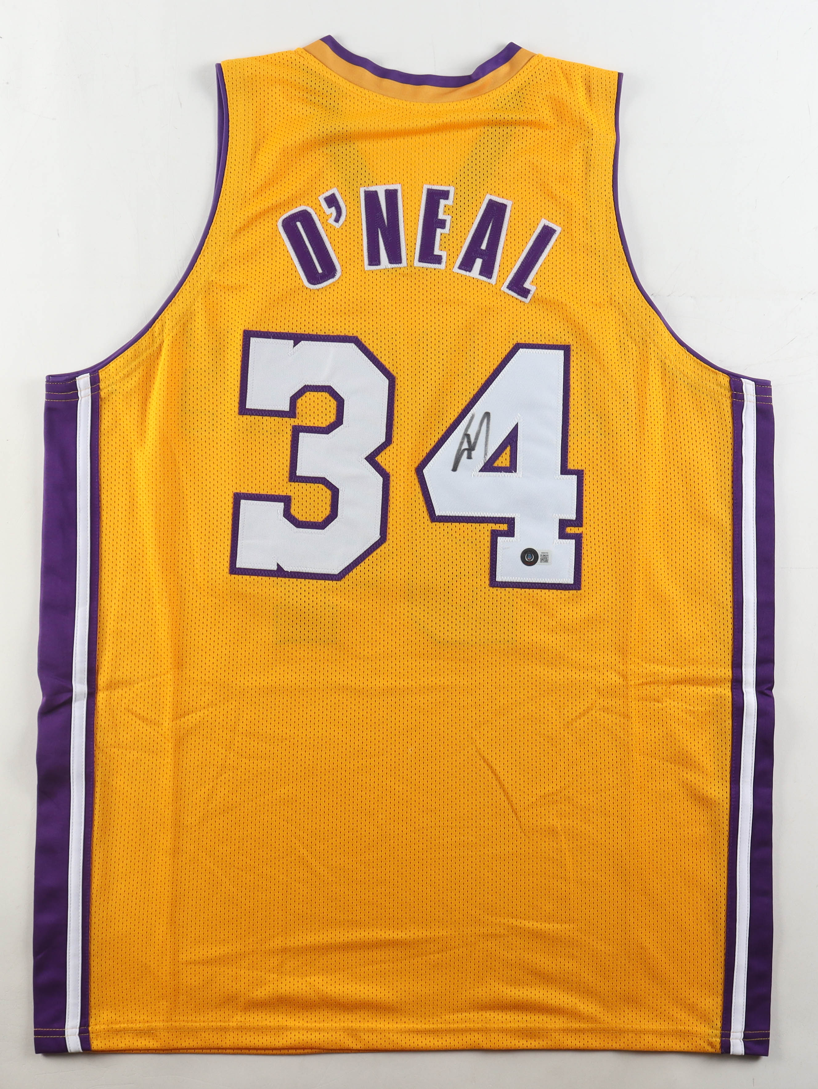 Custom jersey with everything sewn on, size XL. Hand-signed by Shaquille O'Neal (HOF).