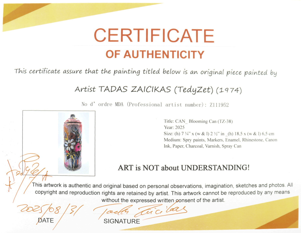 Spray can measures approximately 8" in height. Hand-signed by the artist, Tadas Zaicikas.