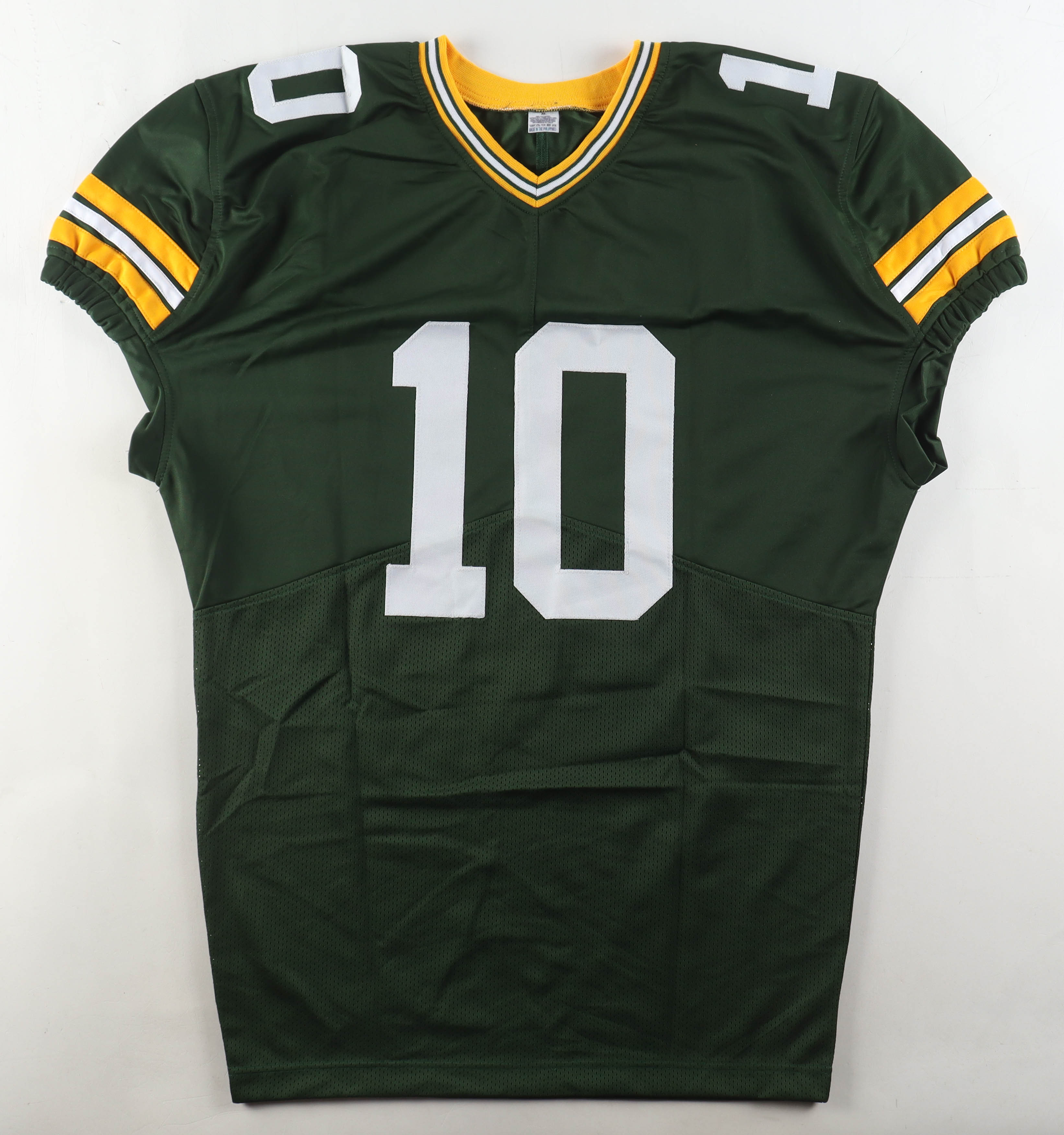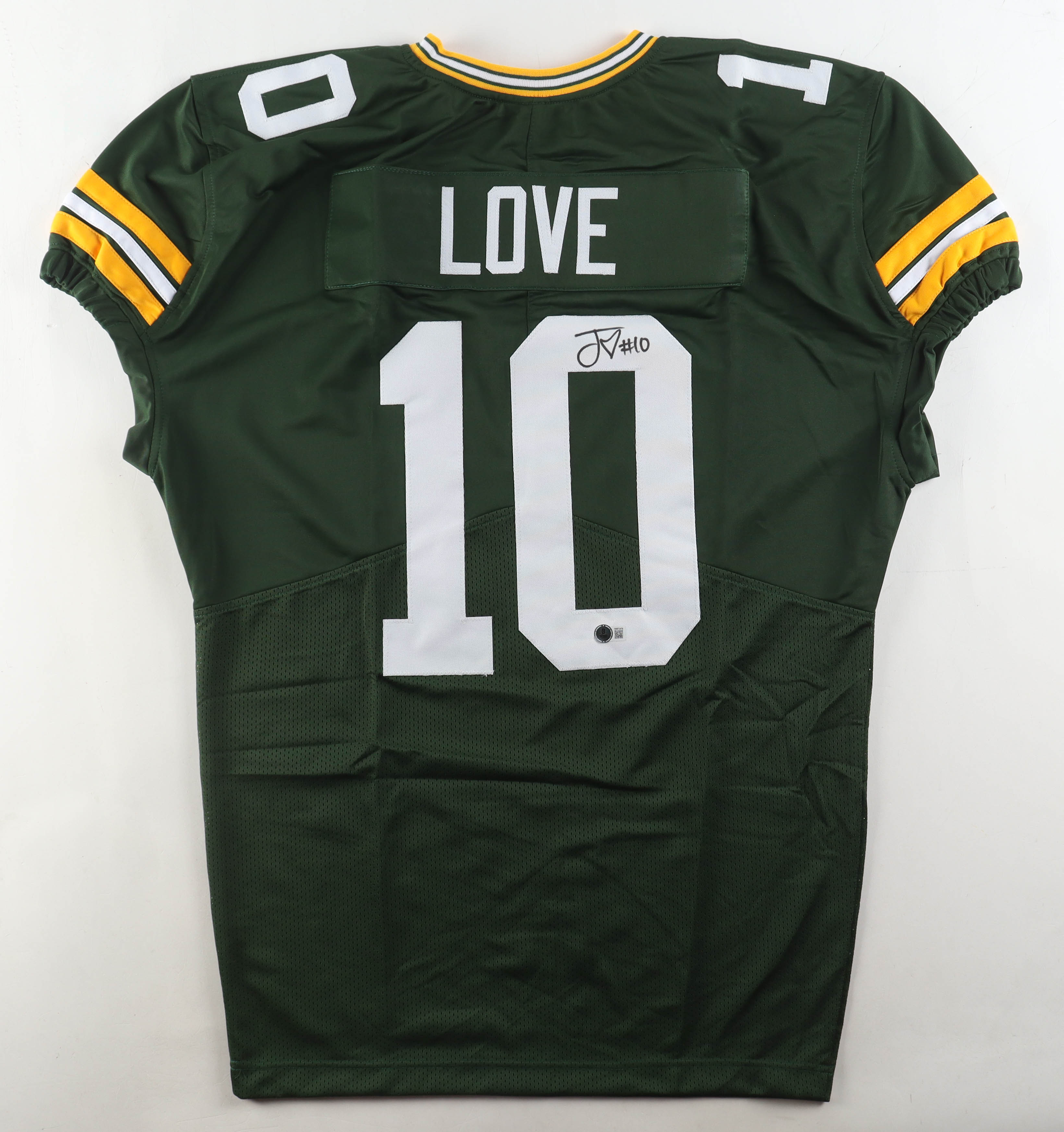 Custom jersey with everything sewn on, size XL. Hand-signed by Jordan Love.