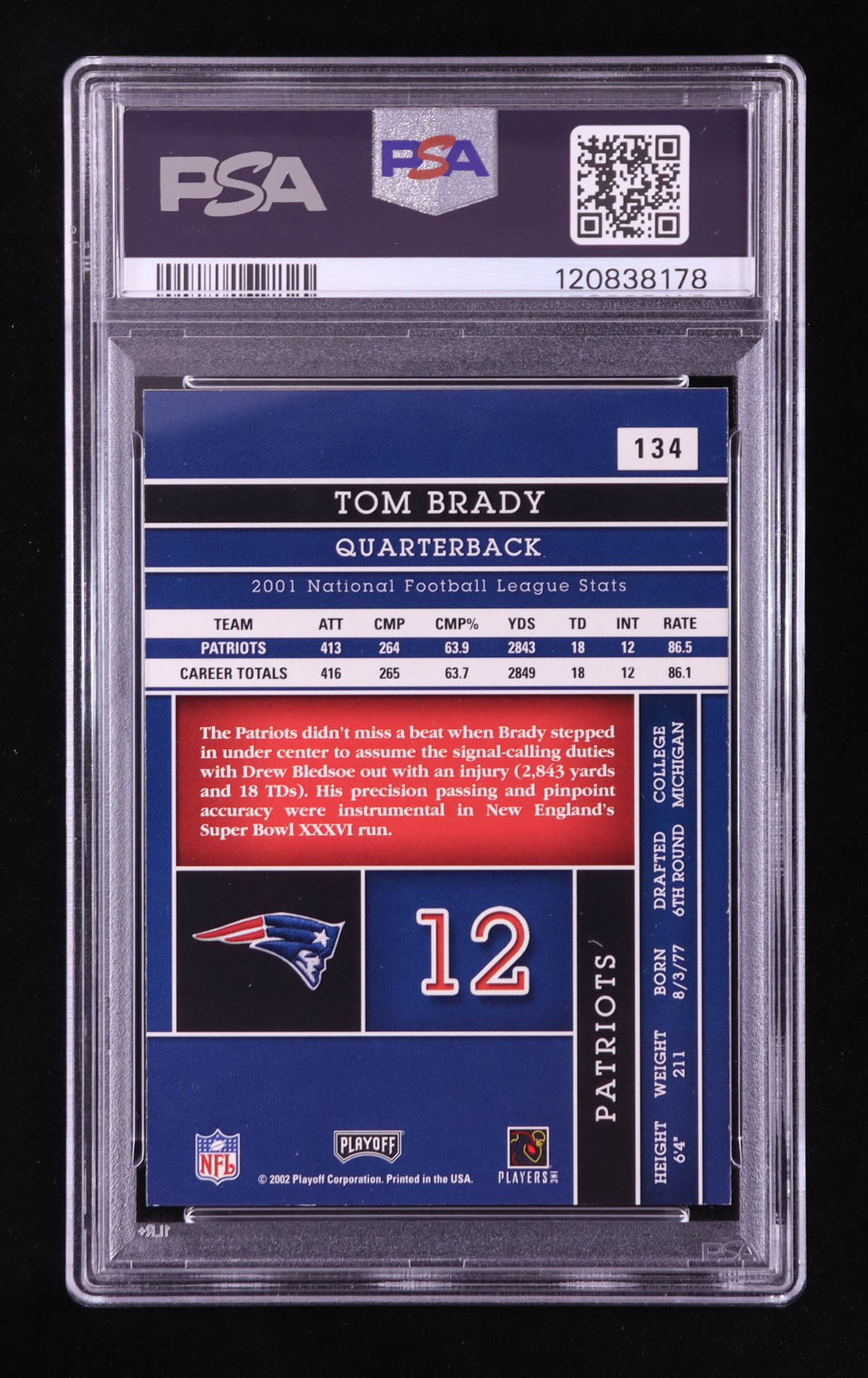Tom Brady 2002 Absolute Memorabilia #134 (PSA 9)