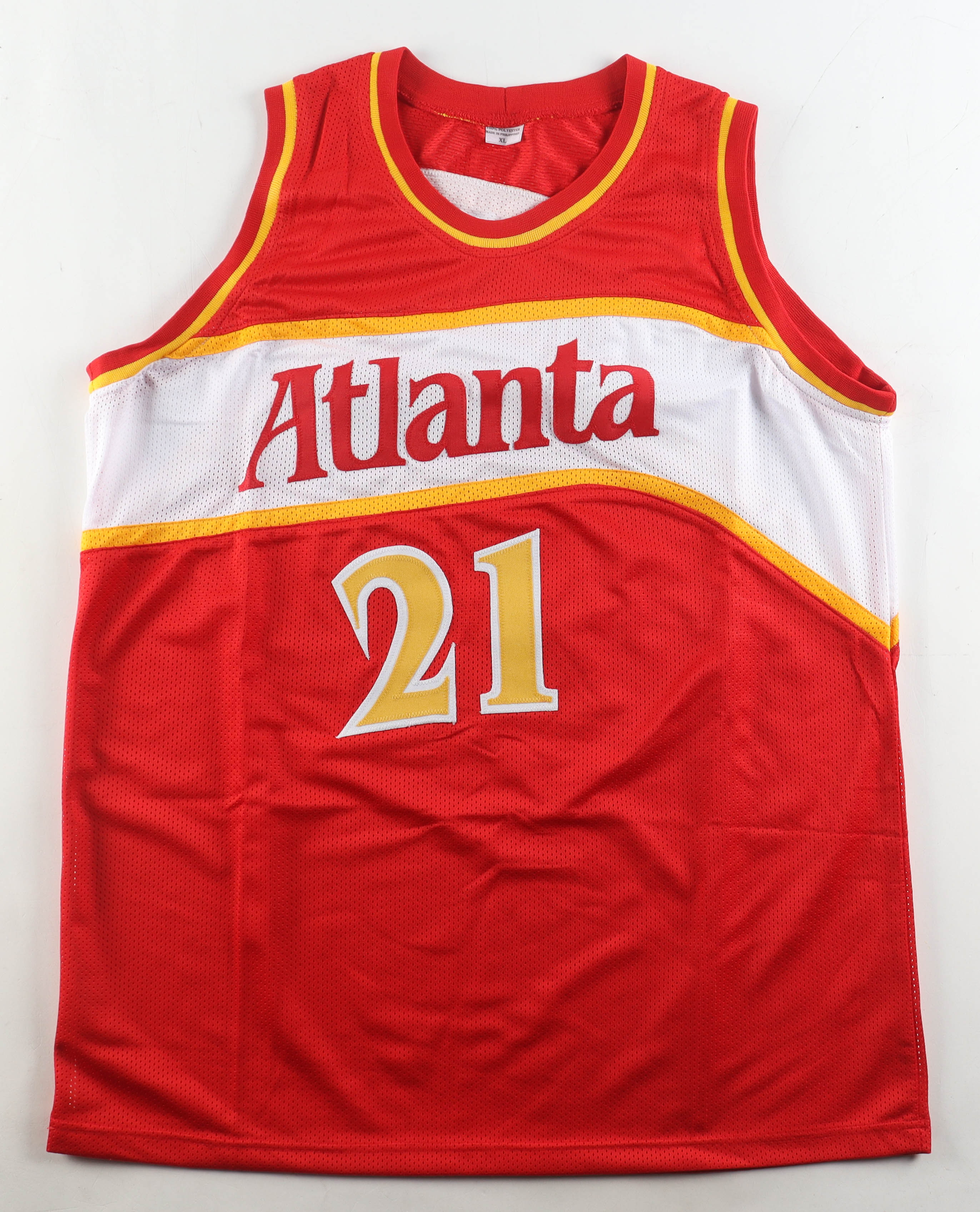 Custom jersey with everything sewn on, size XL. Hand-signed by Dominique Wilkins (HOF).