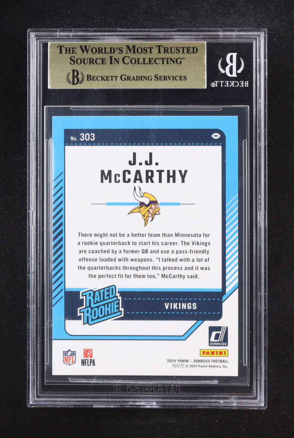 J.J. McCarthy 2024 Donruss #303 RR RC (Beckett 9.5)