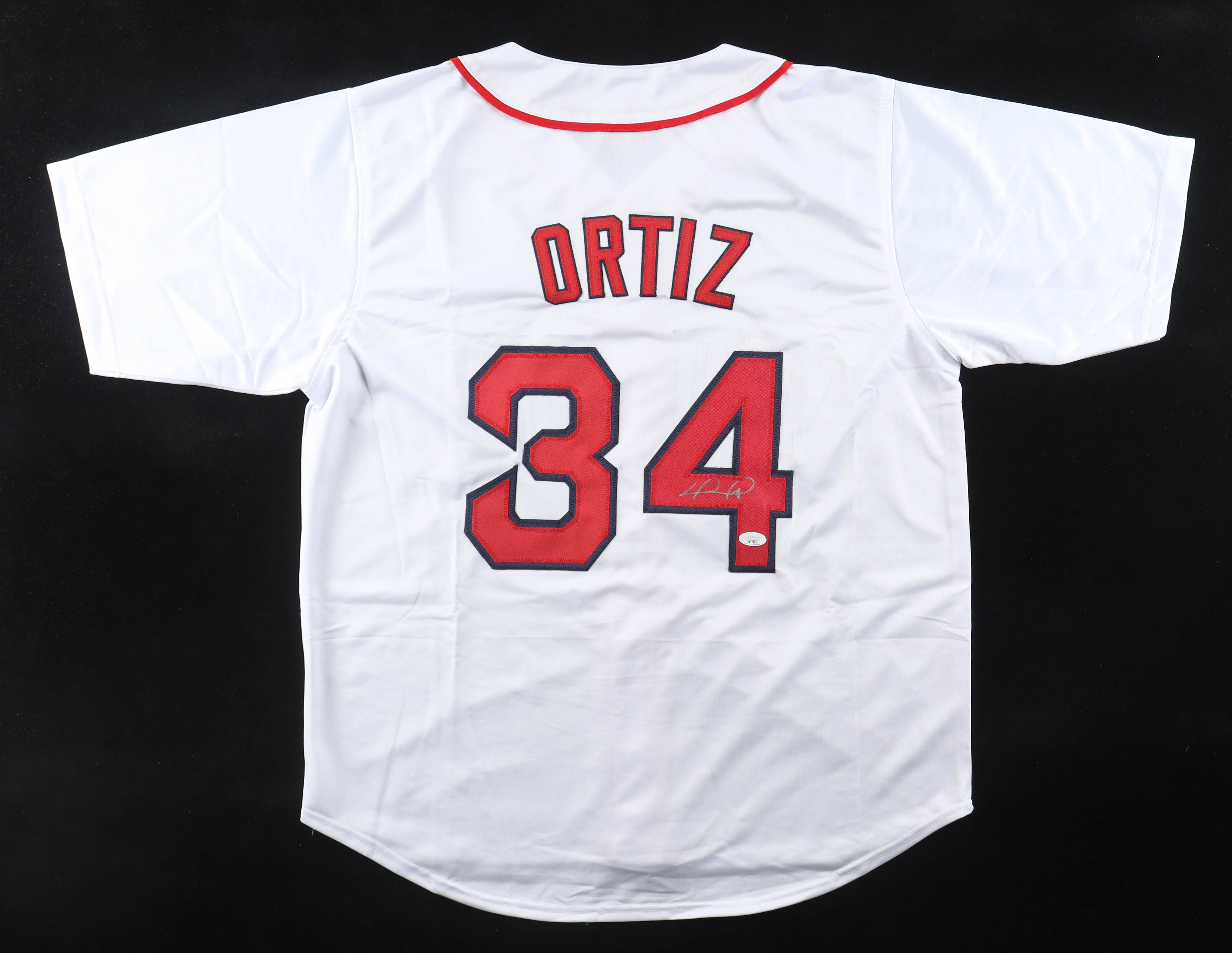 Custom jersey with everything sewn on, size XL. Hand-signed by David Ortiz (HOF).