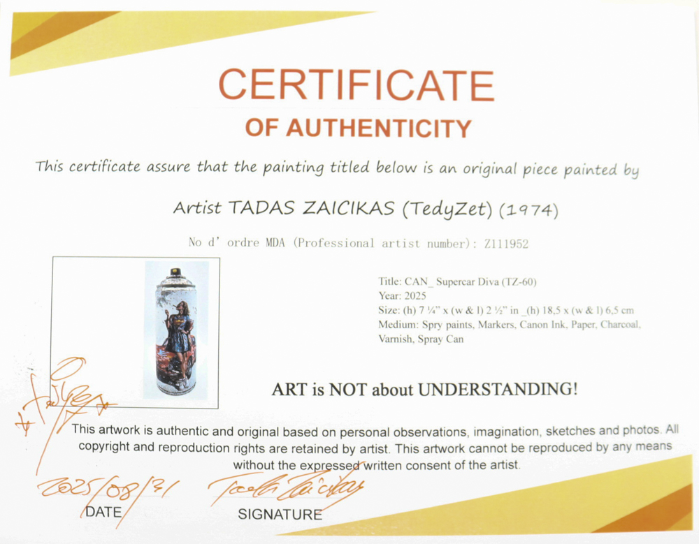 Spray can measures approximately 8" in height. Hand-signed by the artist, Tadas Zaicikas.