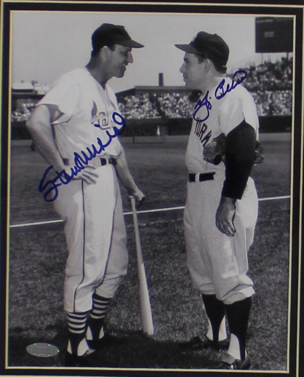 Custom frame measures 16” x 26” in size and features a photo that has been hand-signed by Yogi Berra and Stan Musial (New York Yankees, HOF).
