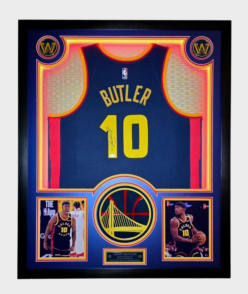 Jimmy Butler Signed Warriors Custom Framed LED Backlit Nike Jersey Display (JSA)
