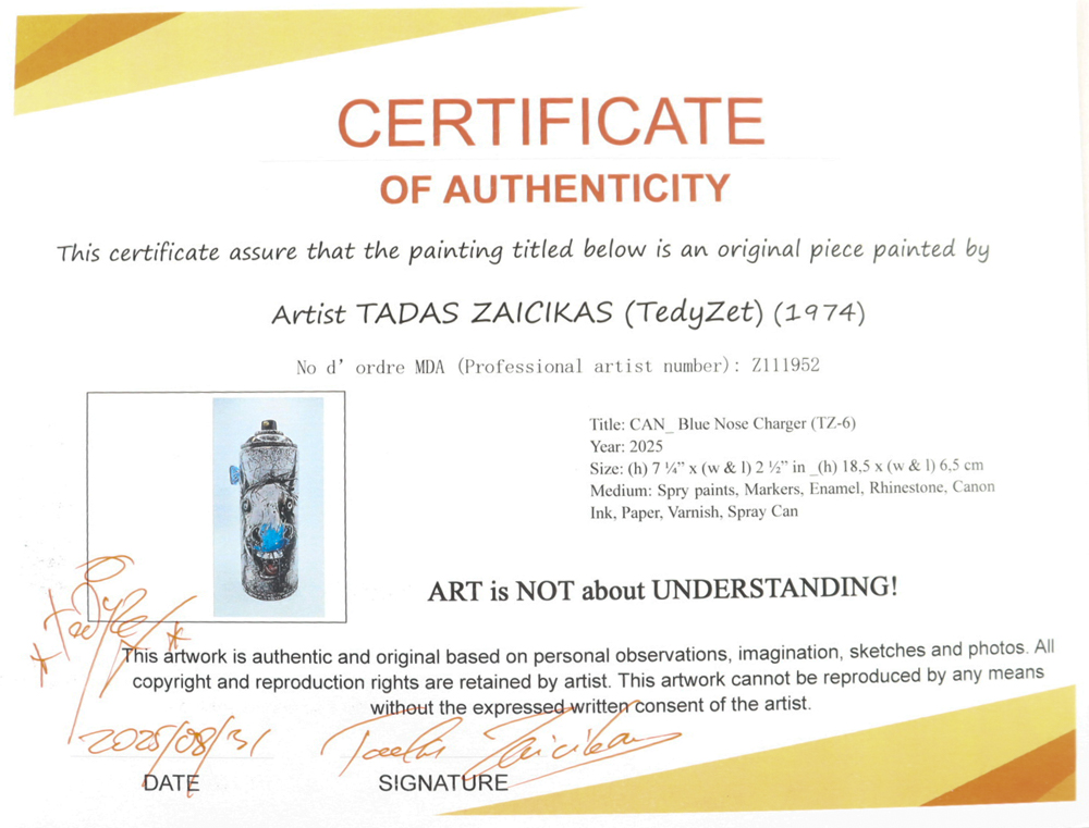 Spray can measures approximately 8" in height. Hand-signed by the artist, Tadas Zaicikas.