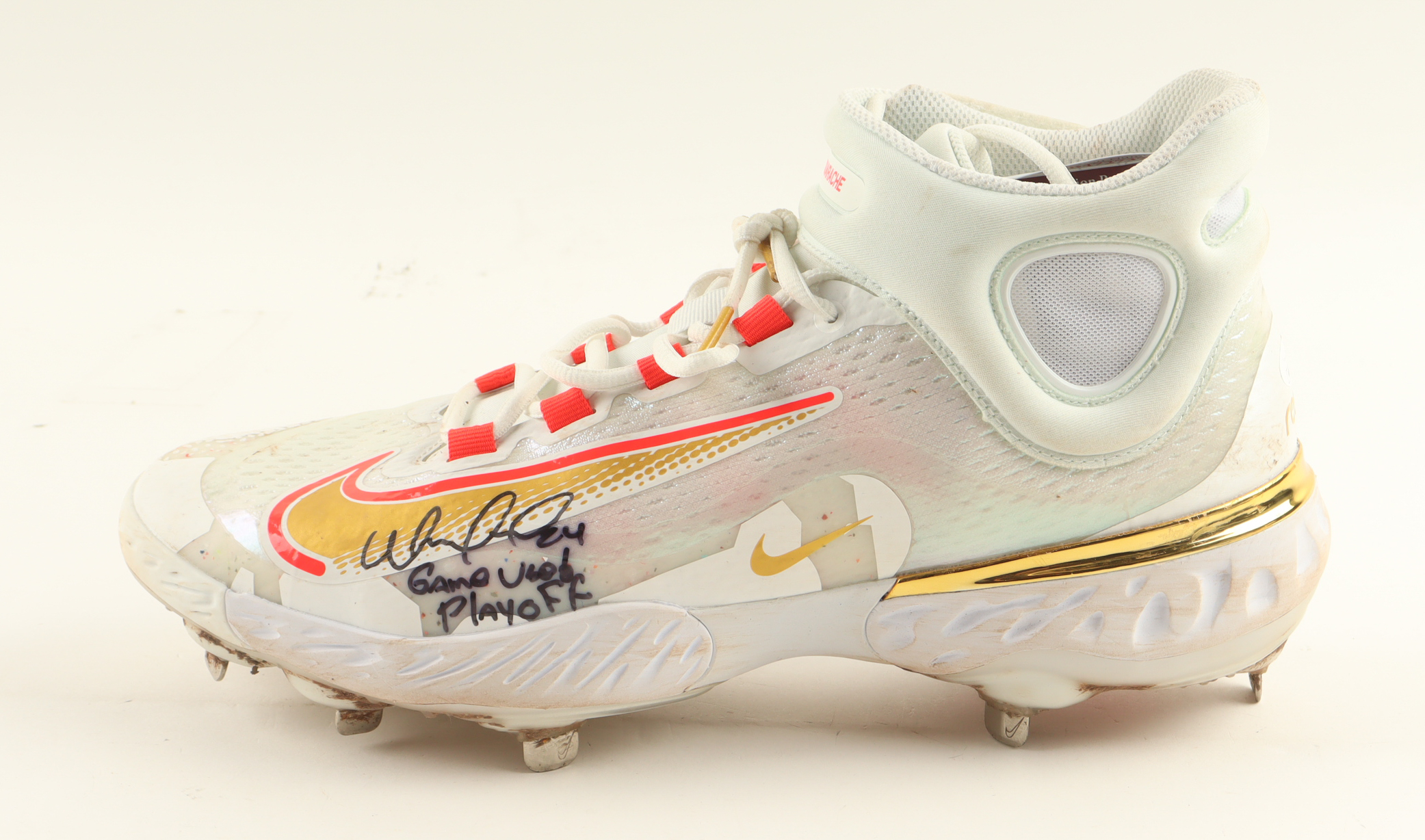 William Contreras Signed Game-Used Nike Baseball Cleat Inscribed "Game Used Playoff" (JSA)