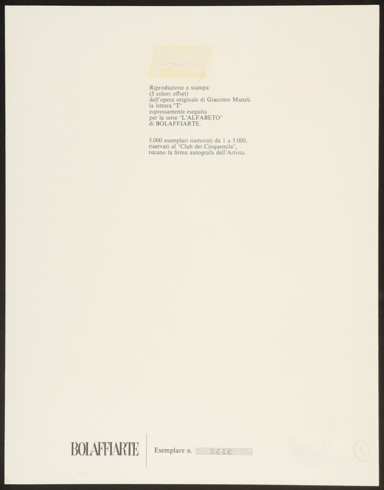 LE "La Lettera T" 9x11.5 Lithograph by Giacomo Manzu