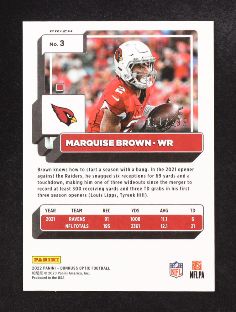 Marquise Brown 2022 Donruss Optic Aqua #3 #151/299