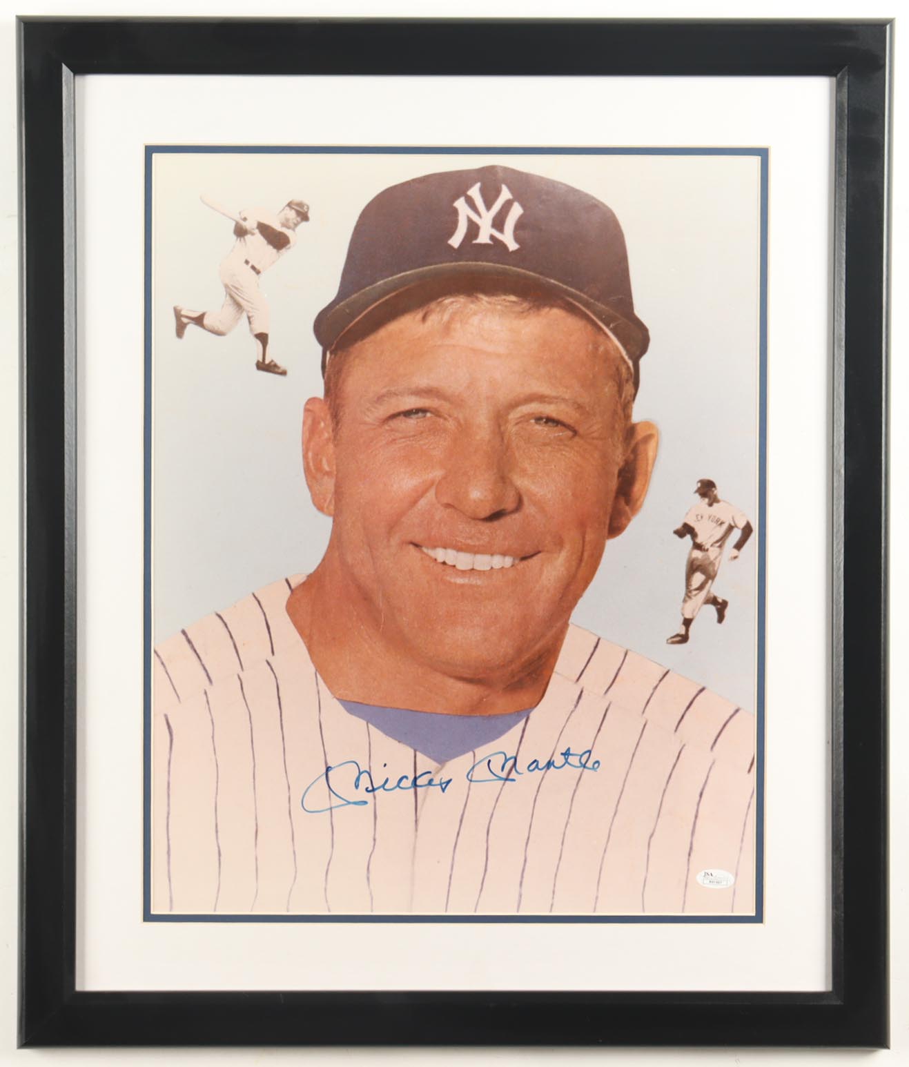 Custom frame measures approximately 22.5" x 26.5" in size. Photo is hand-signed by Mickey Mantle (D. 1995, New York Yankees, HOF).