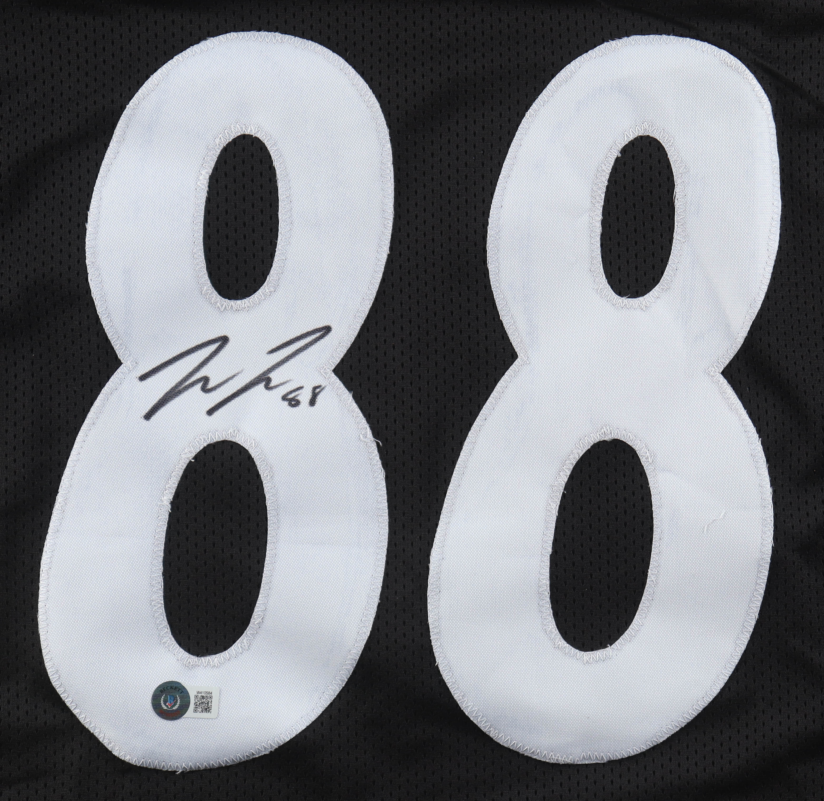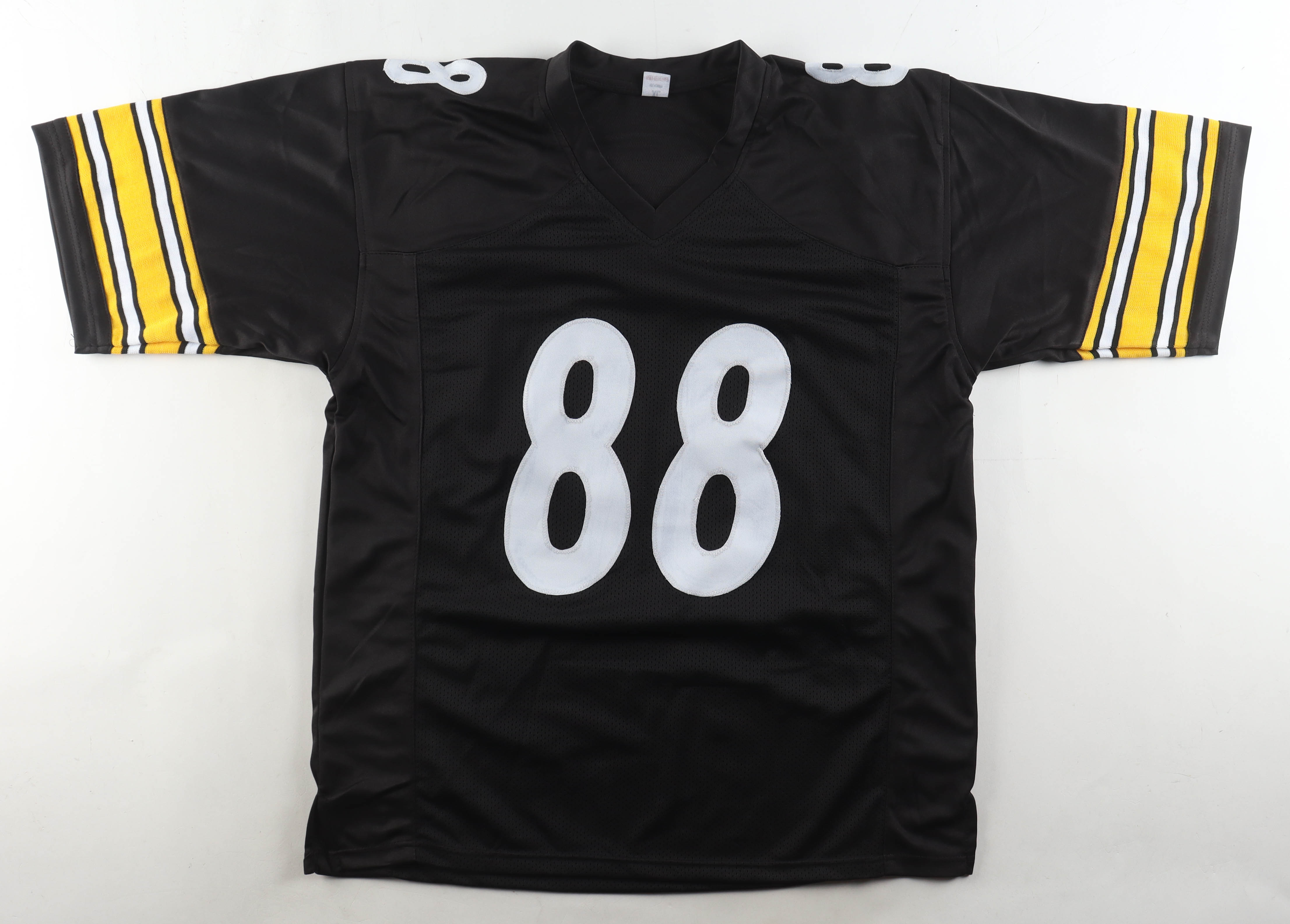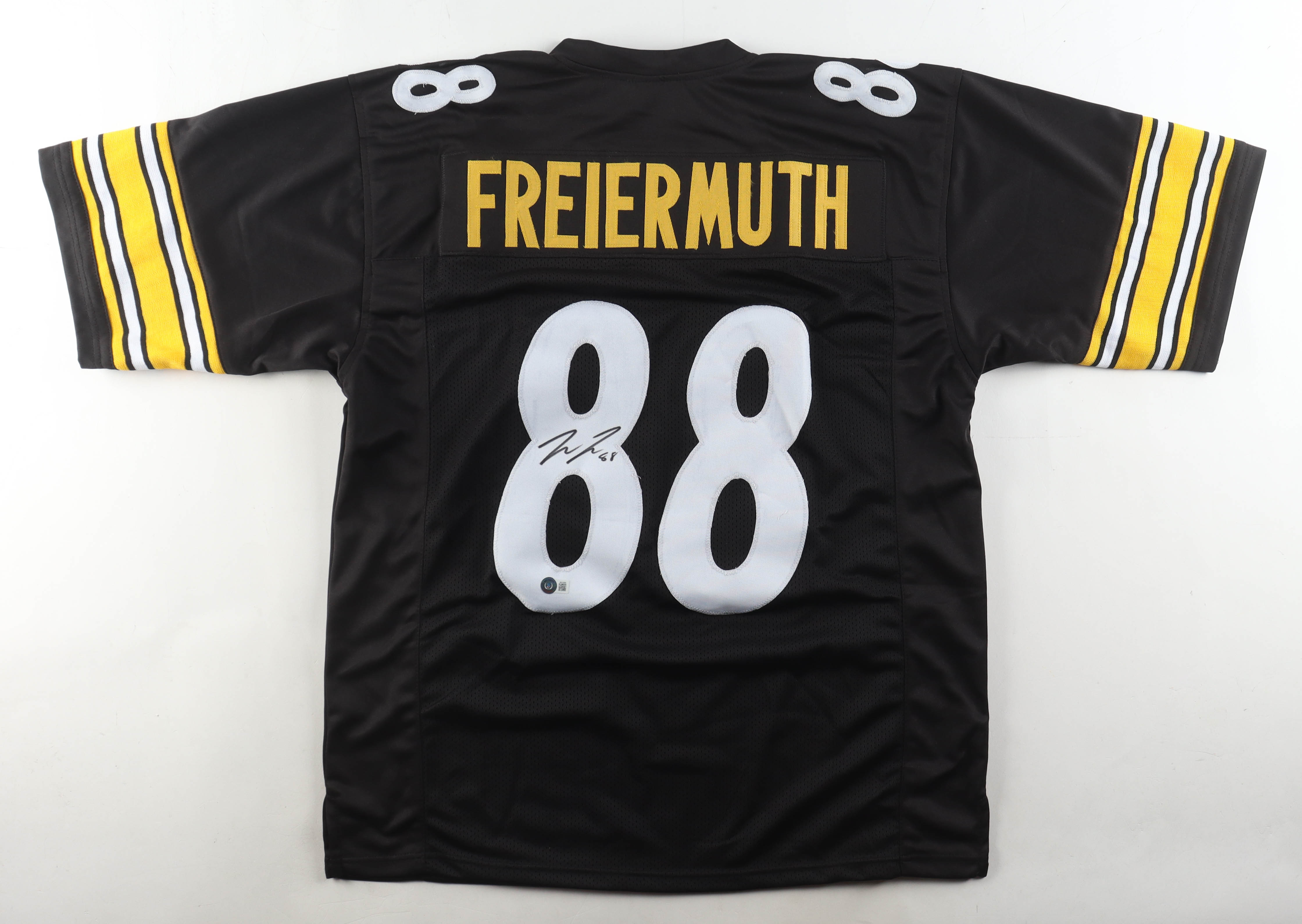 Custom Jersey. Everything has been sewn on, size XL. Has been hand-signed by Pat Freiermuth. Please note, glue is visible through the reverse number. See photos regarding the condition of the item.