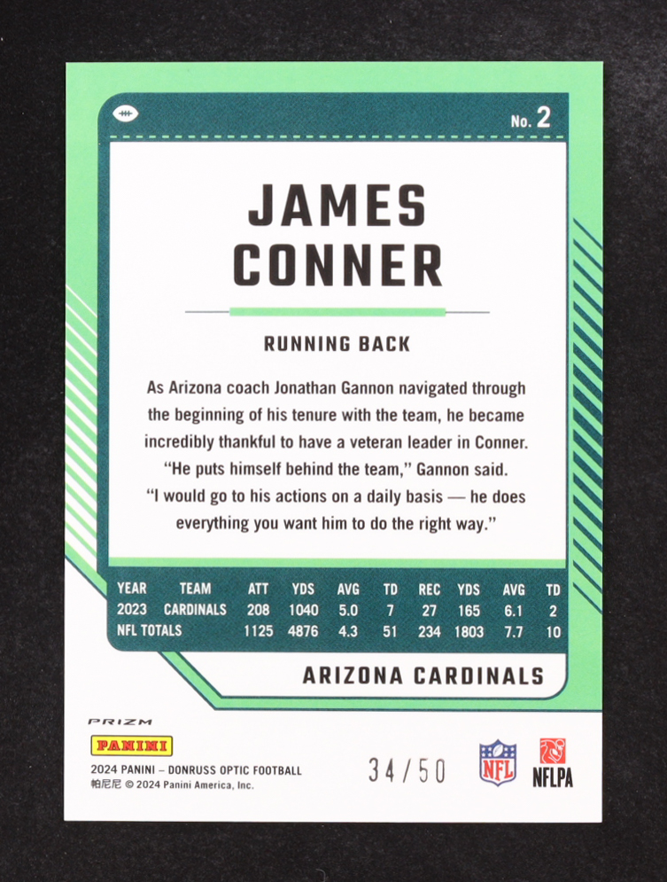 James Conner 2024 Donruss Optic Lime Green #2 #34/50