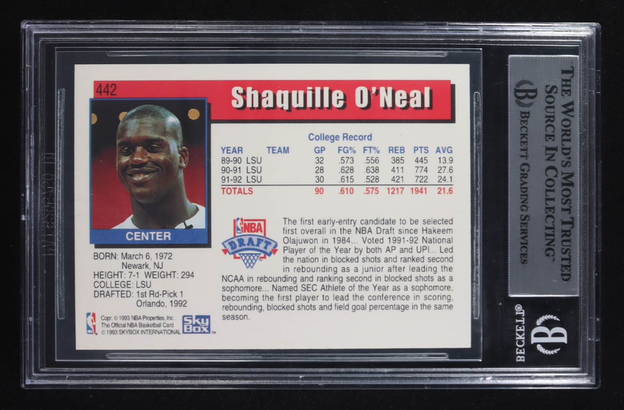 Shaquille O'Neal Signed 1992-93 Hoops Authentic Sticker Auto #442 RC (Beckett | Auto Grade BGS Authentic)