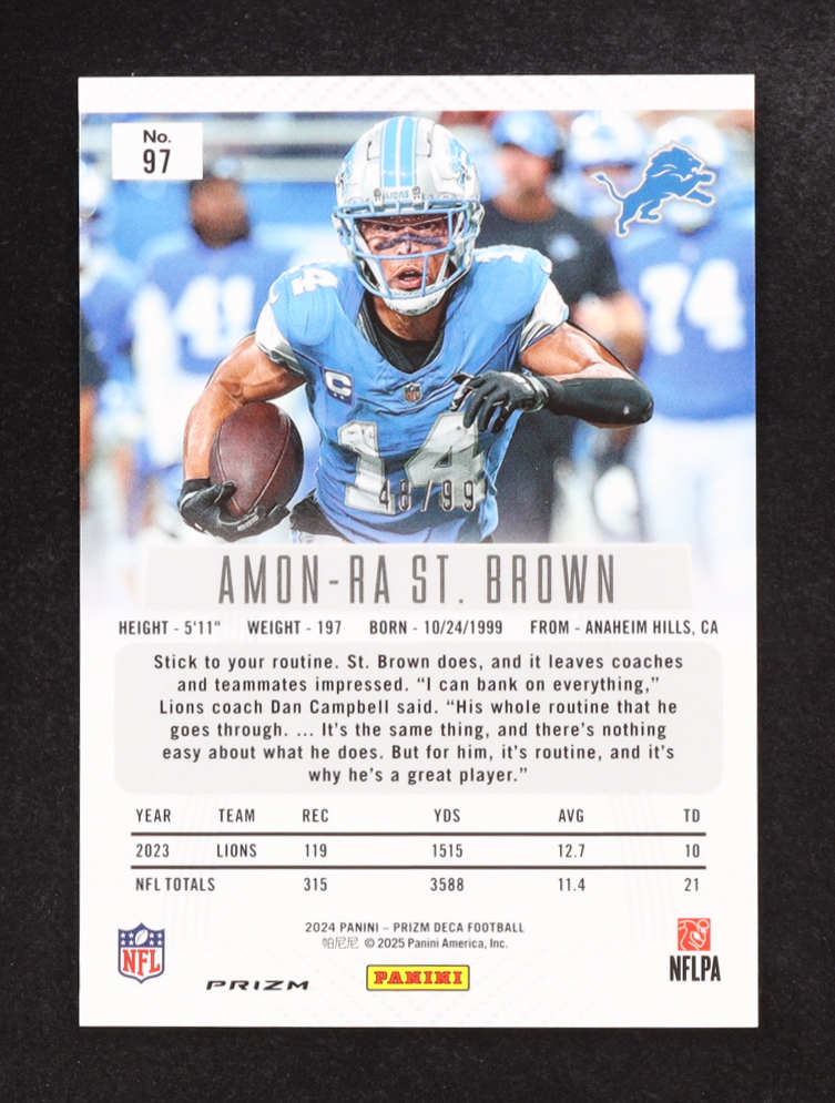 Amon-Ra St. Brown 2024 Panini Prizm Deca Prizms Purple #97 #48/99