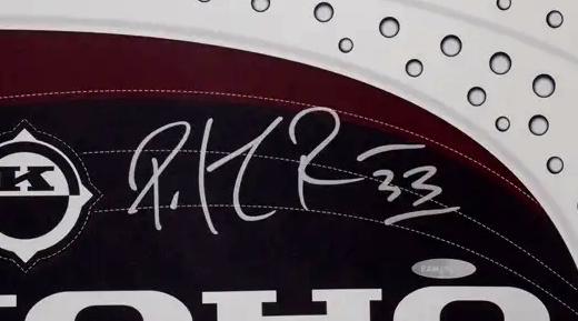 Koho full-size goalie blacker pad. Hand-signed by Patrick Roy (Colorado Avalanche, HOF).