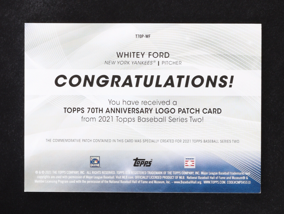 Whitey Ford 2021 Topps 70th Commemorative Anniversary Logo Patch #70LP-WF