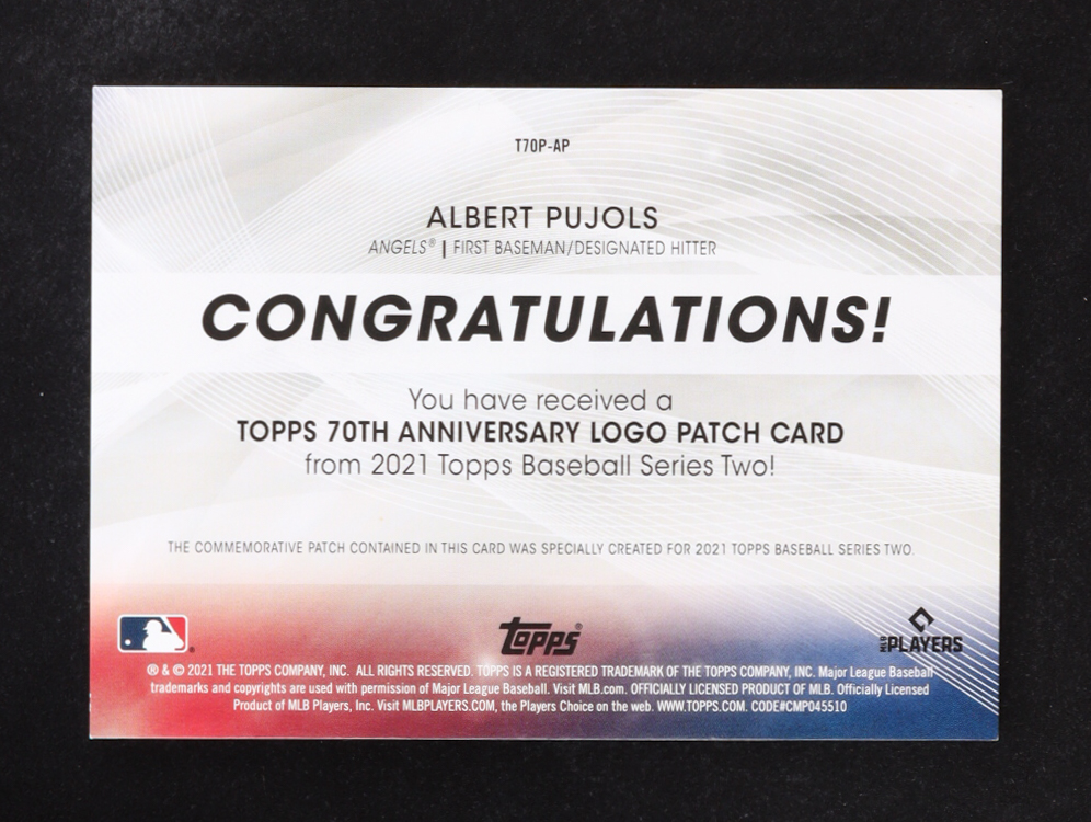 Albert Pujols 2021 Topps 70th Commemorative Anniversary Logo Patch #70LP-AP