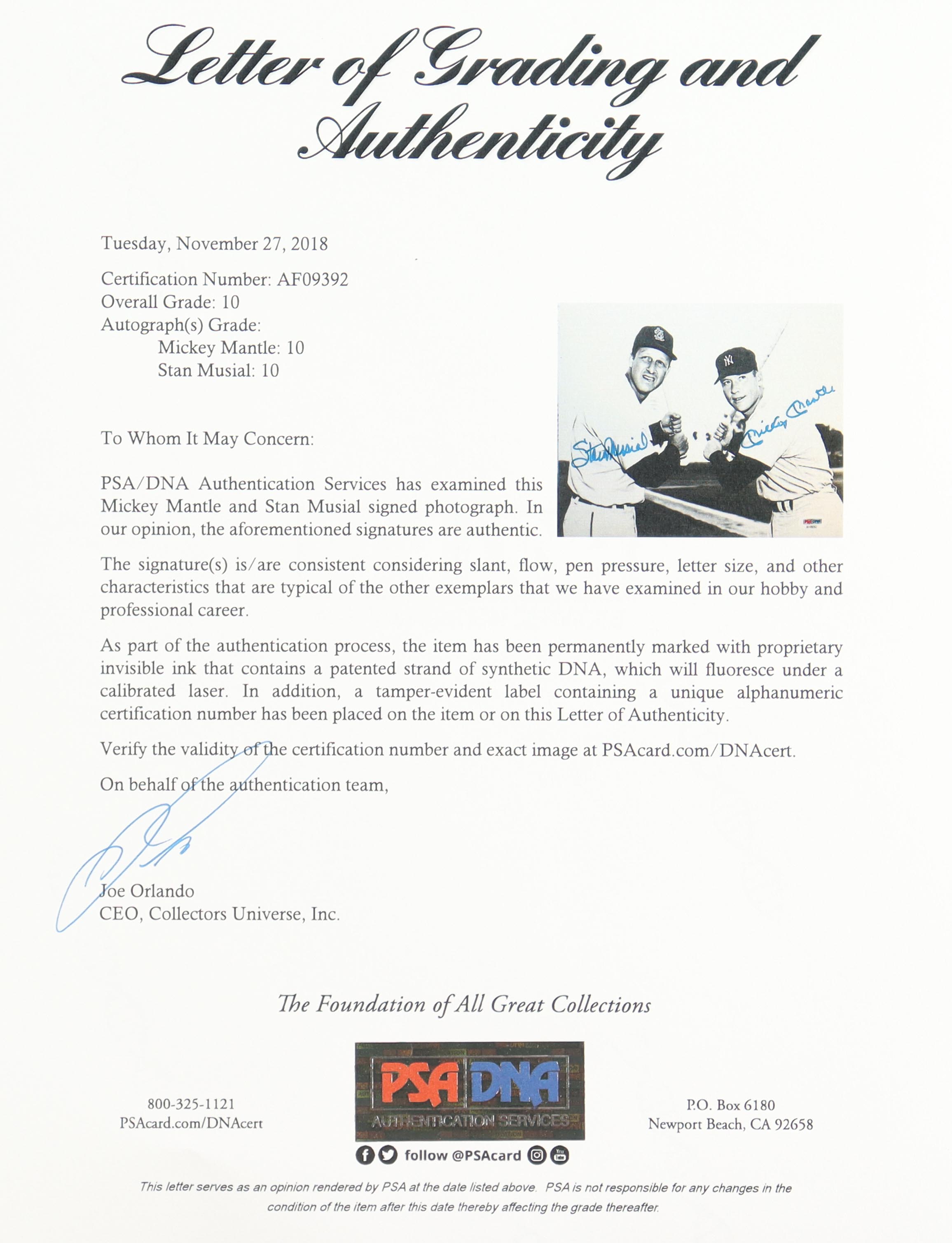 Mickey Mantle & Stan Musial Dual-Signed Vintage 8x10 Photo (PSA | Autograph Graded 10)