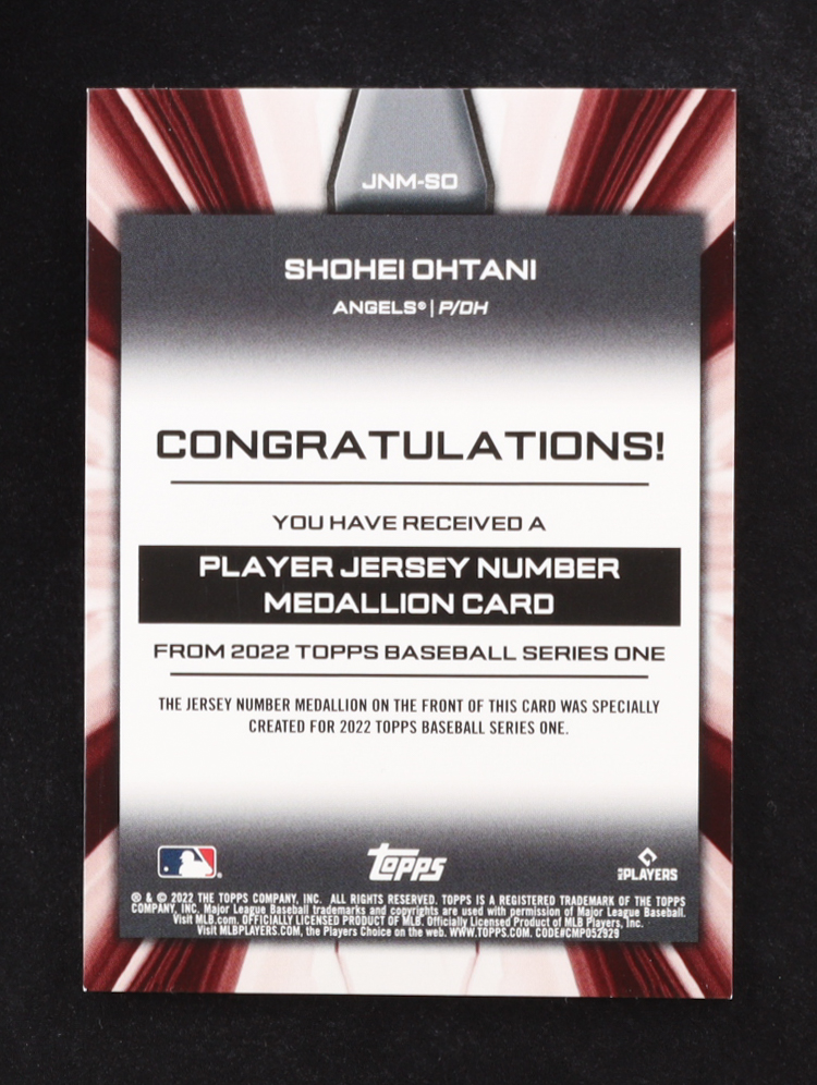 Shohei Ohtani 2022 Topps Commemorative Jersey Number Medallion #JNM-SO