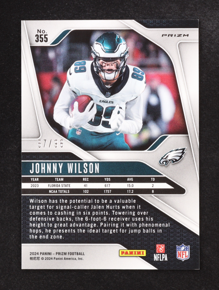 Johnny Wilson 2024 Panini Prizm Prizms Blue Sparkle #355 #57/96 RC