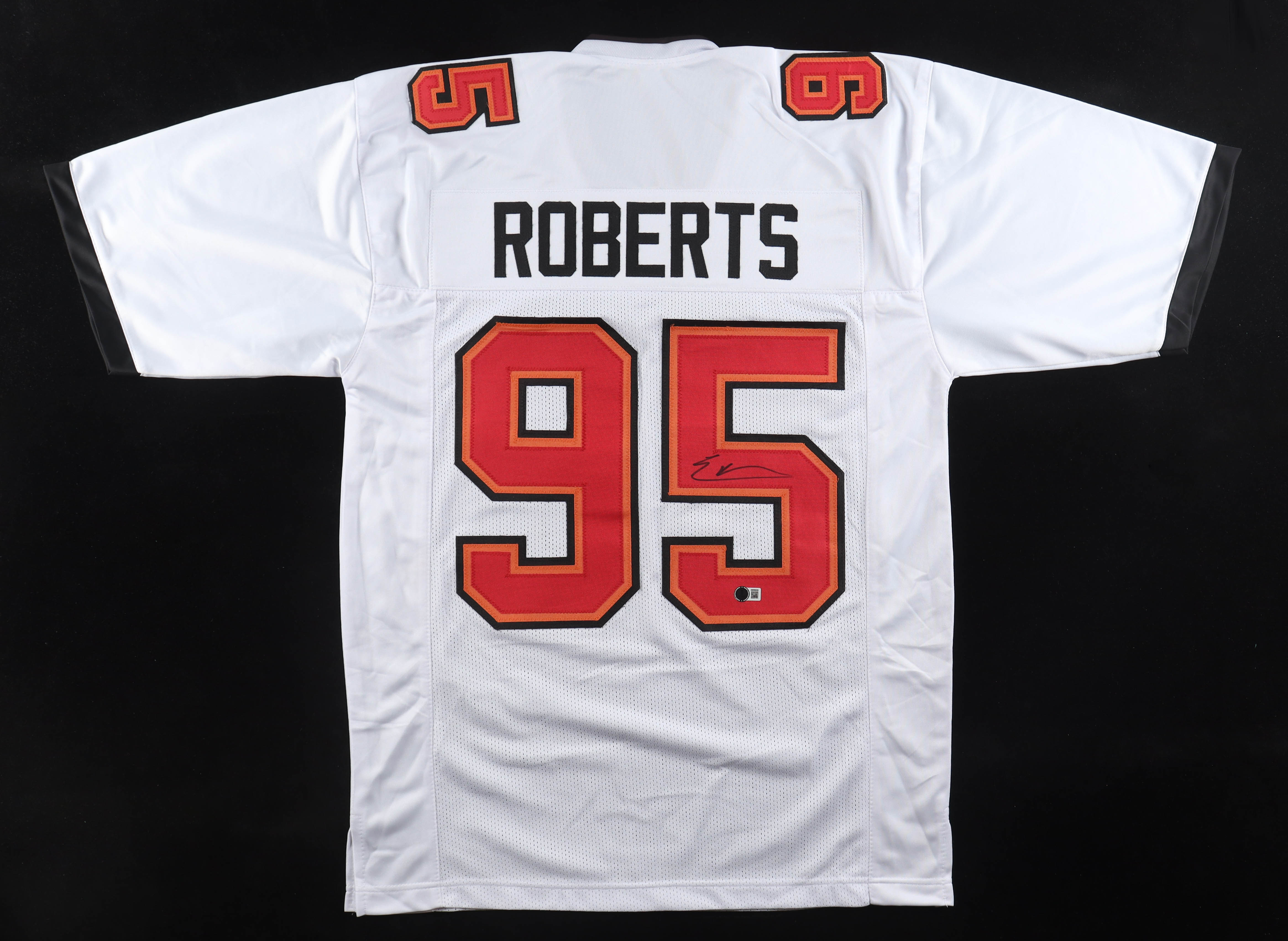 Custom jersey. Everything is sewn on, size XL. Hand-signed by Elijah Roberts.