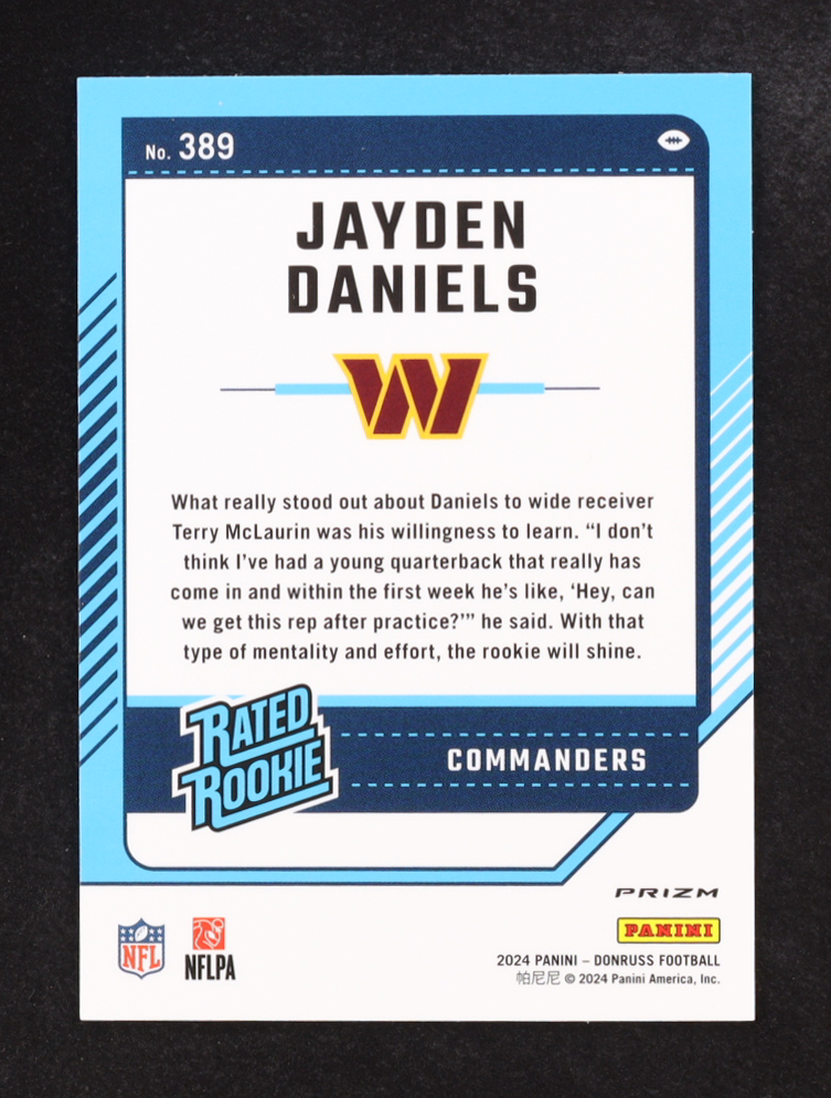 Jayden Daniels 2024 Donruss Optic Rated Rookies Preview Blue Scope #389 RC