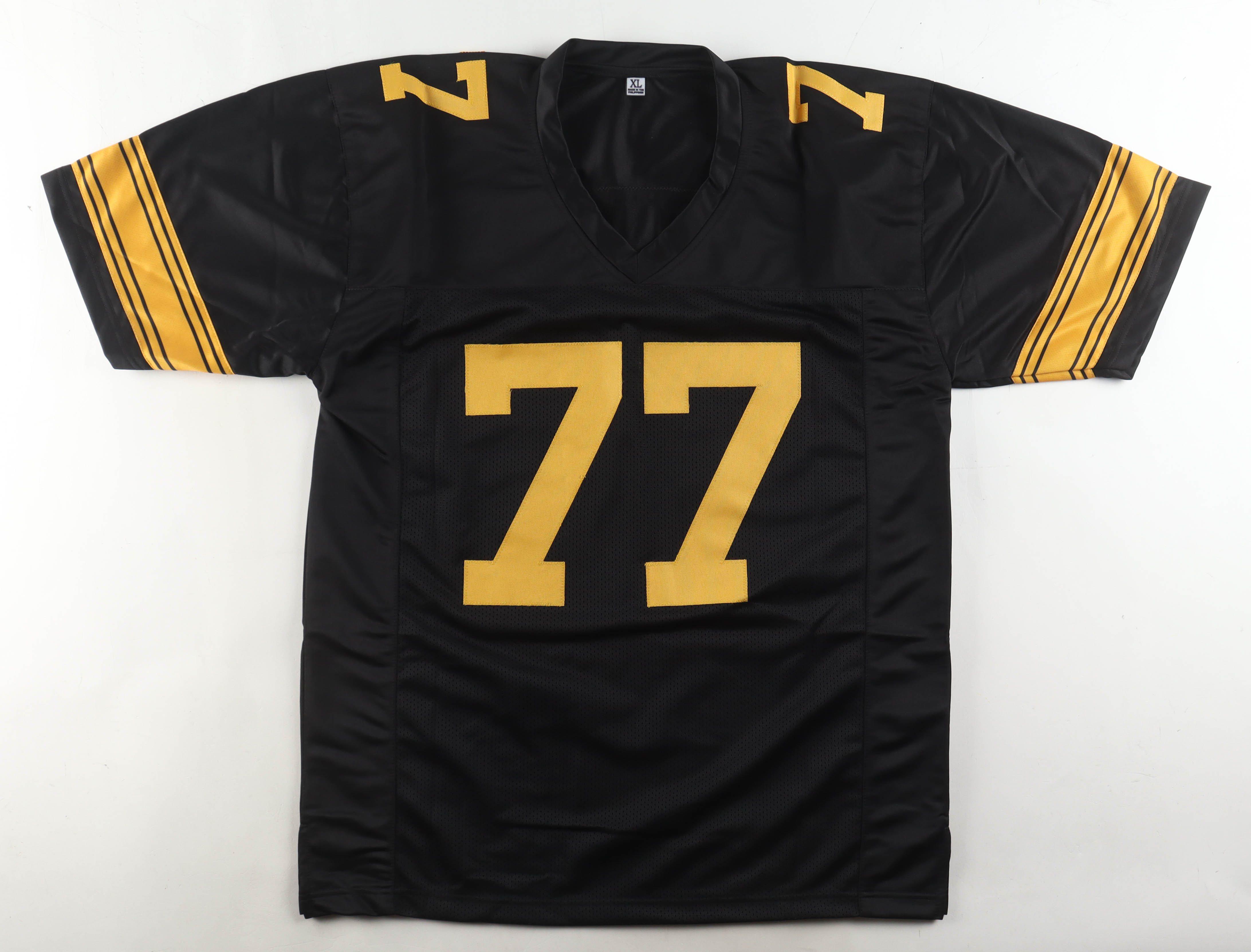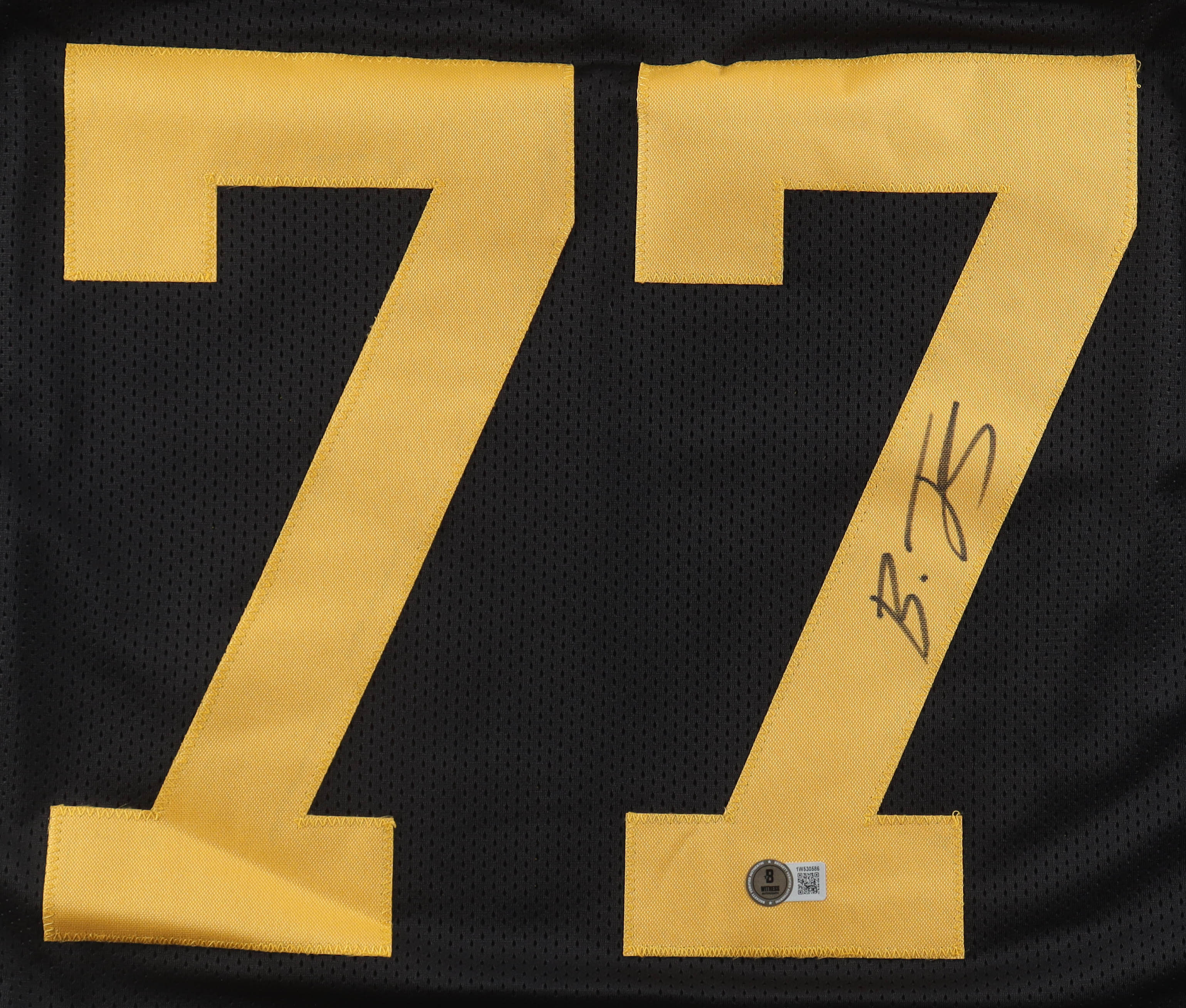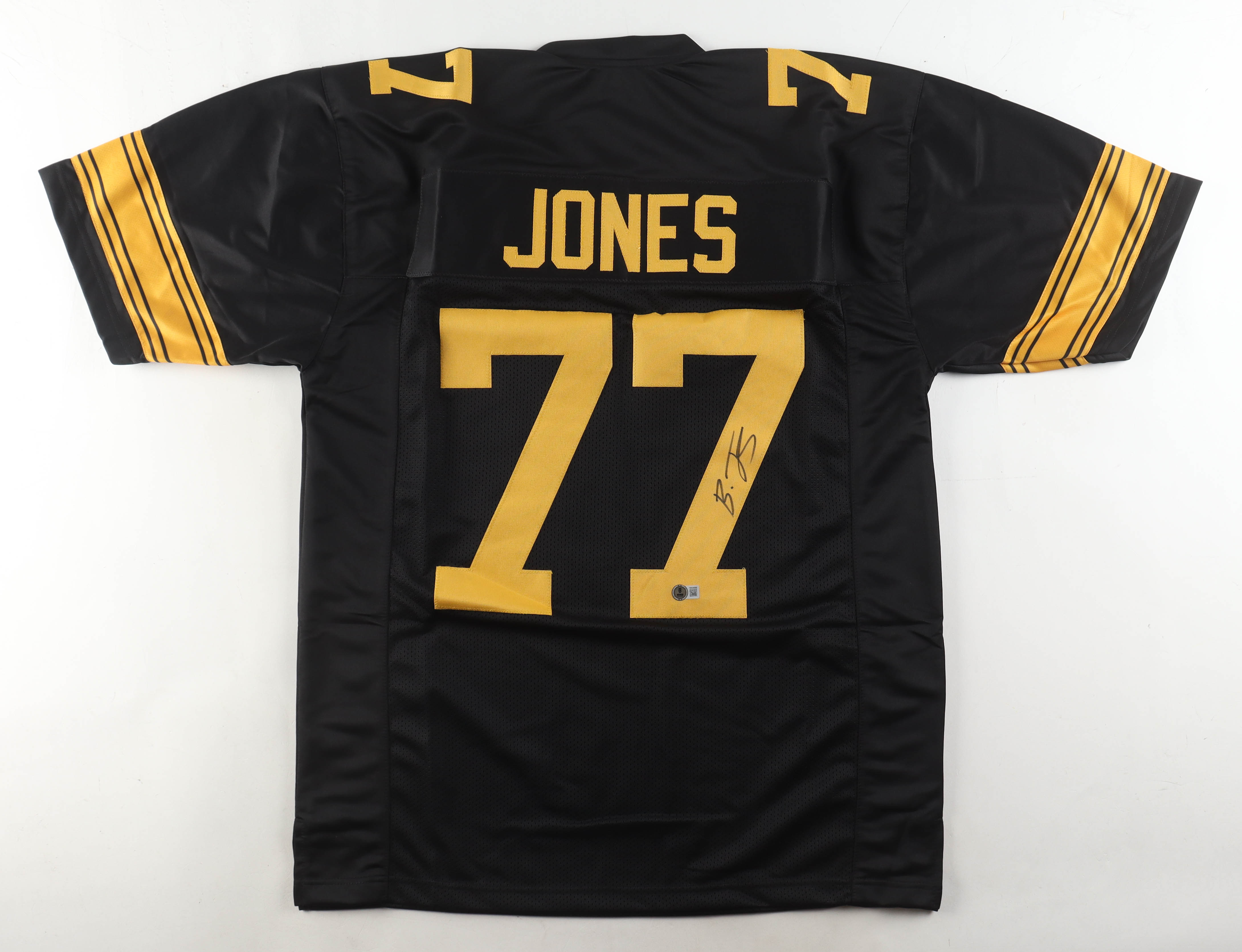 Custom jersey with everything sewn on, size XL. Hand-signed by Broderick Jones.