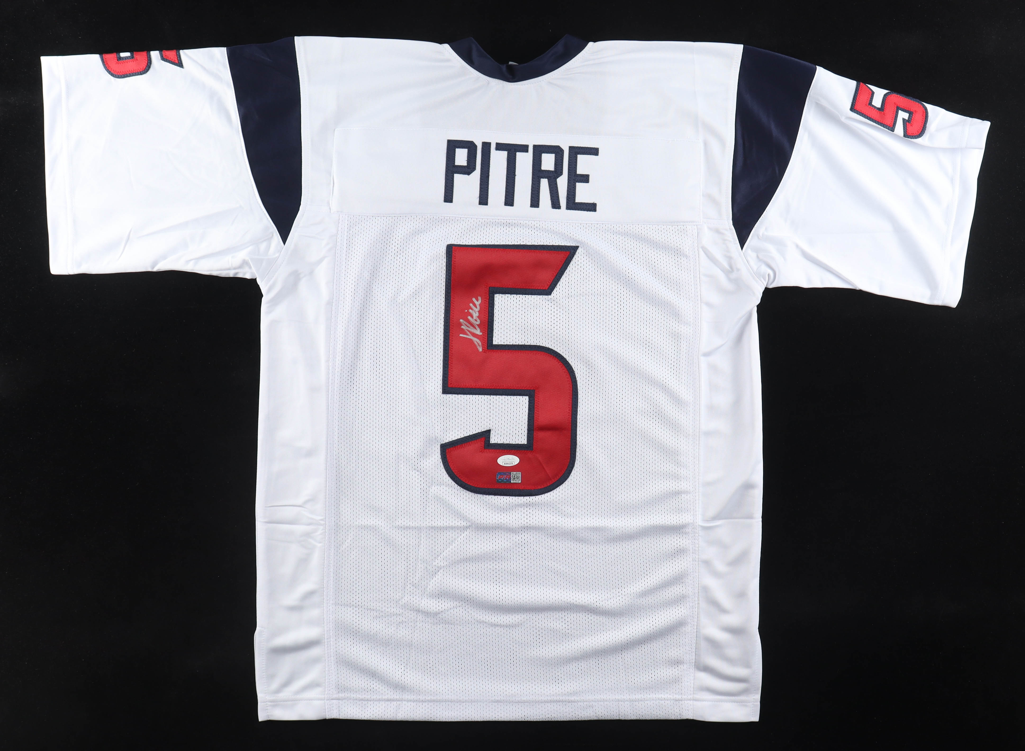 Custom jersey. Everything is sewn on, size XL. Hand-signed by Jalen Pitre.