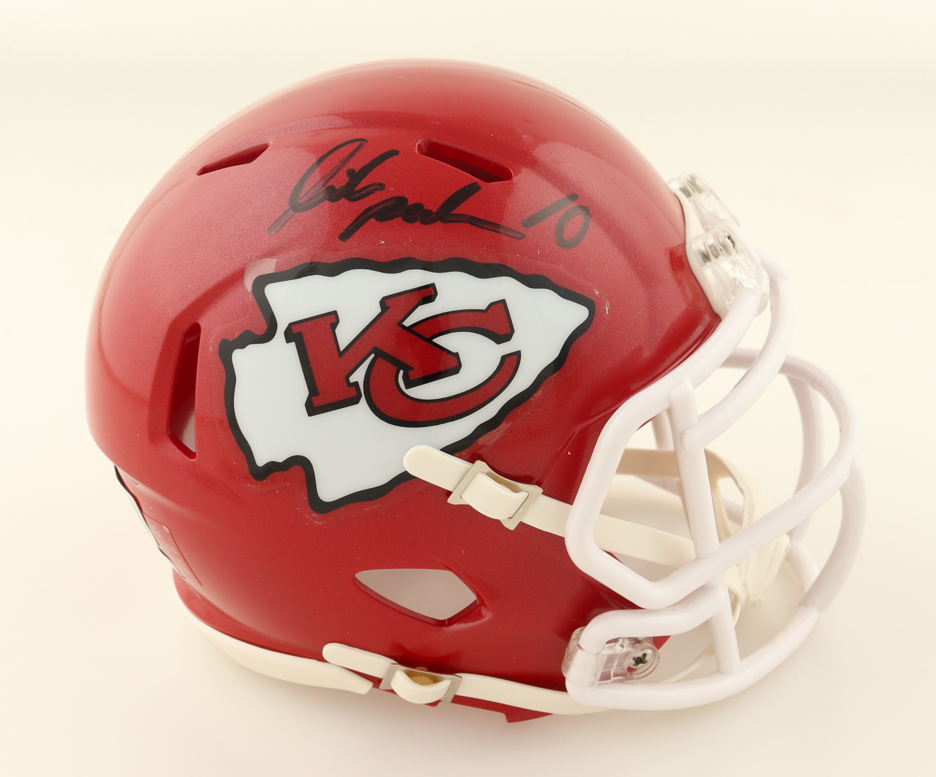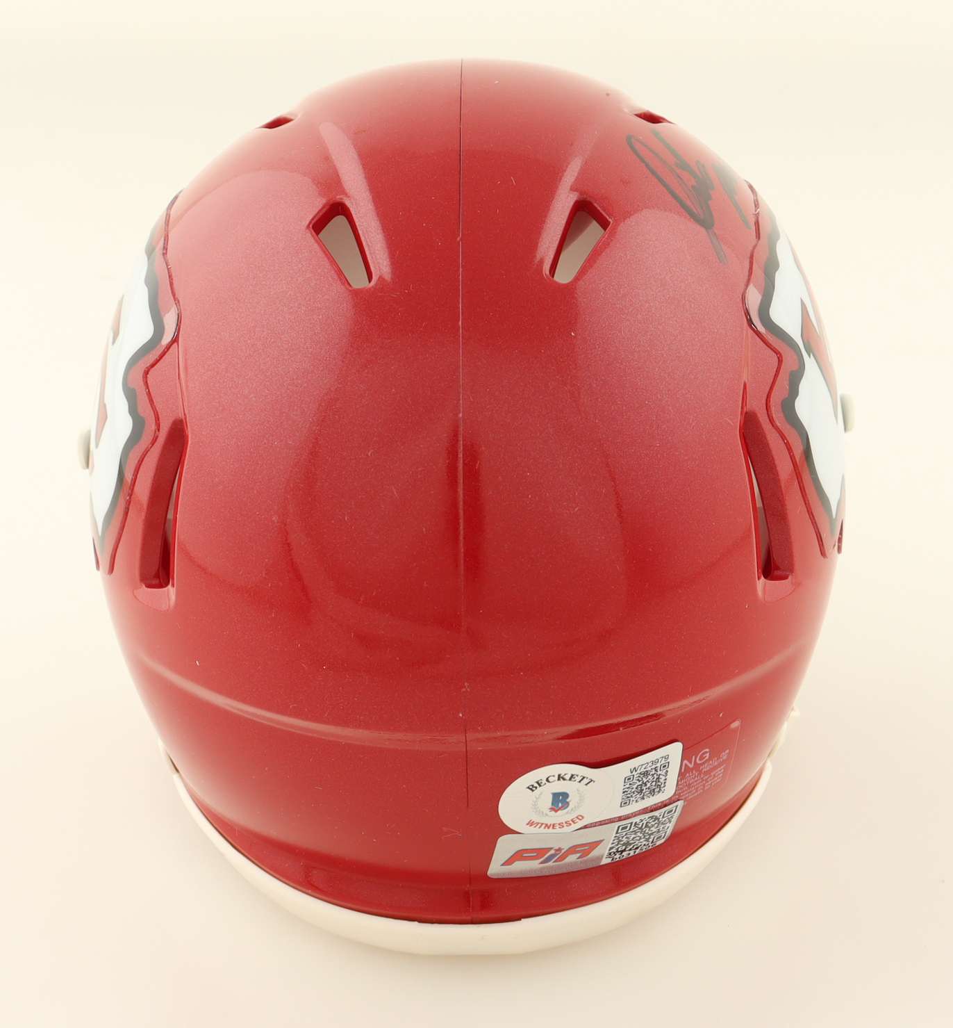 Riddell Kansas City Chiefs Speed mini helmet has been hand-signed by Isiah Pacheco.