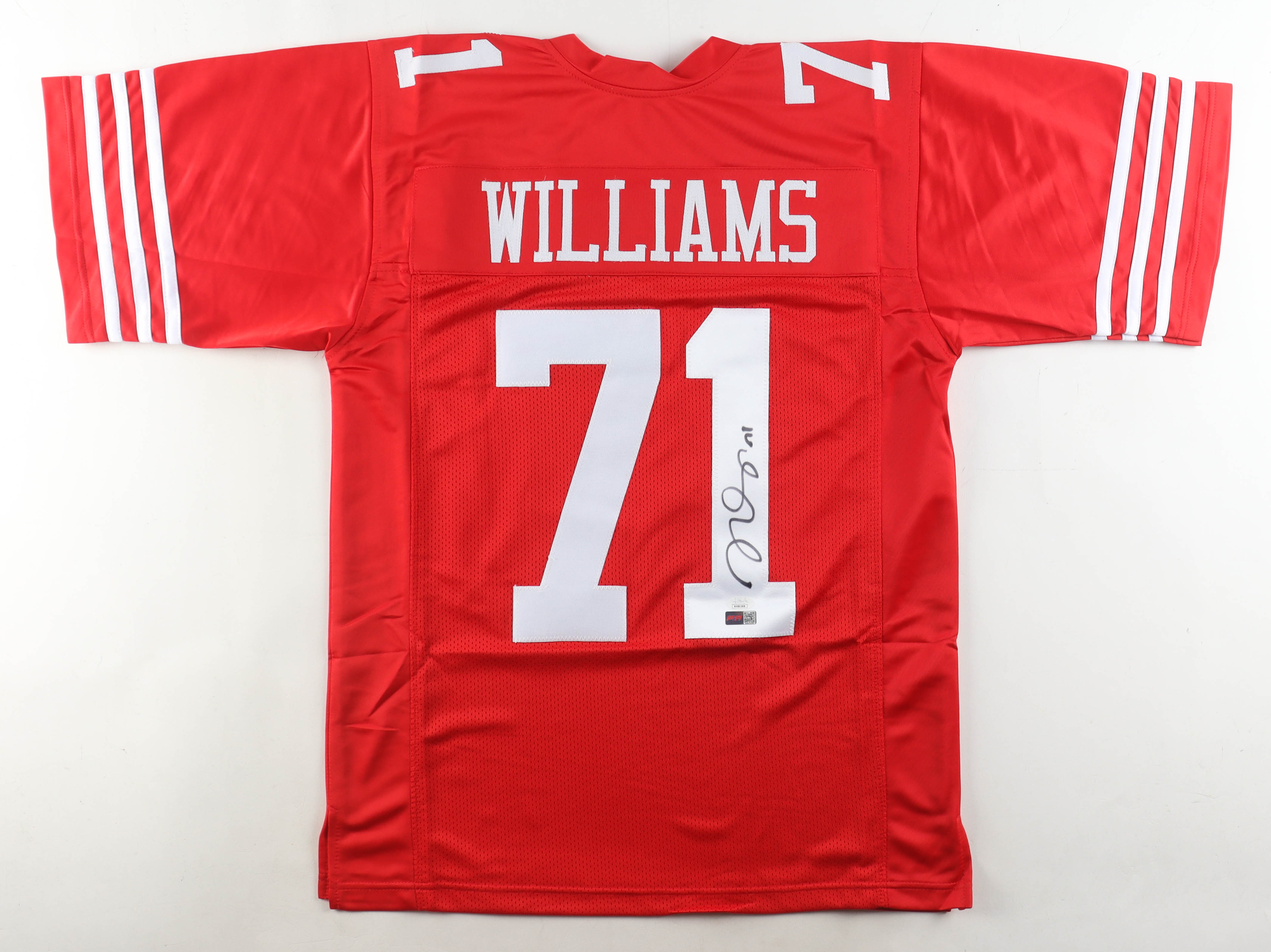 Custom jersey with everything sewn on, size XL. Hand-signed by Trent Williams.