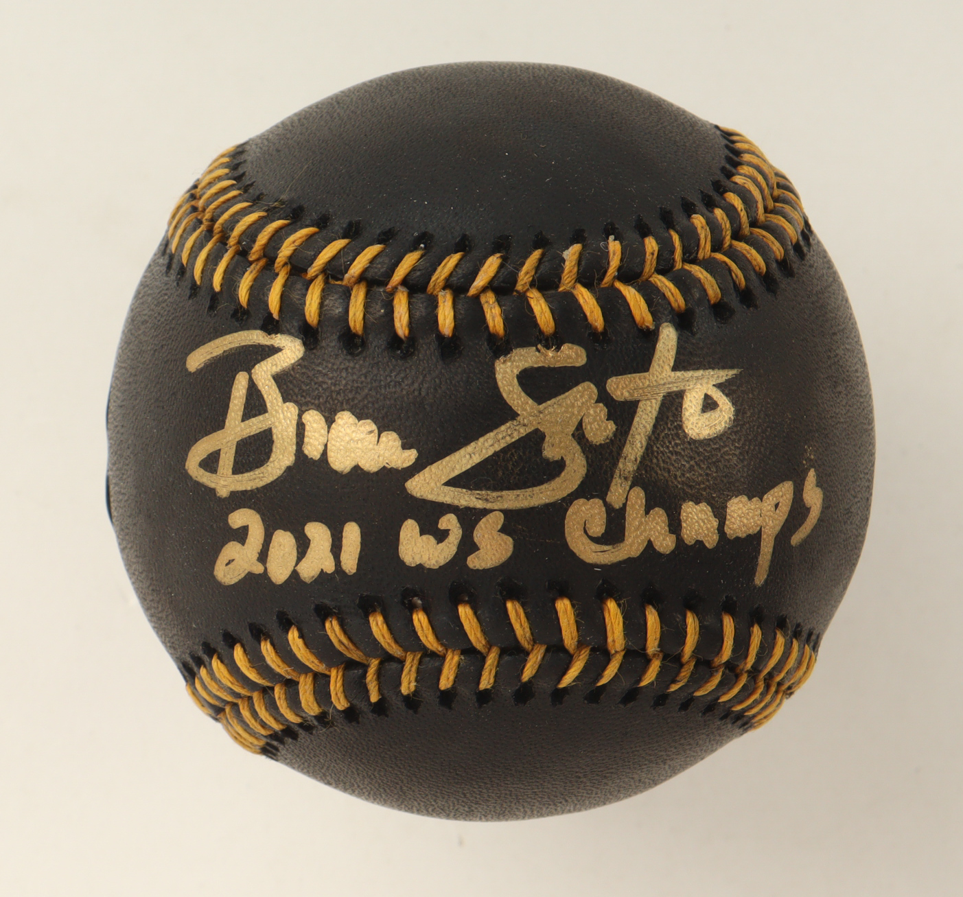 Brian Snitker Signed OML Black Leather Baseball Inscribed "2021 WS Champs" (Snitker)
