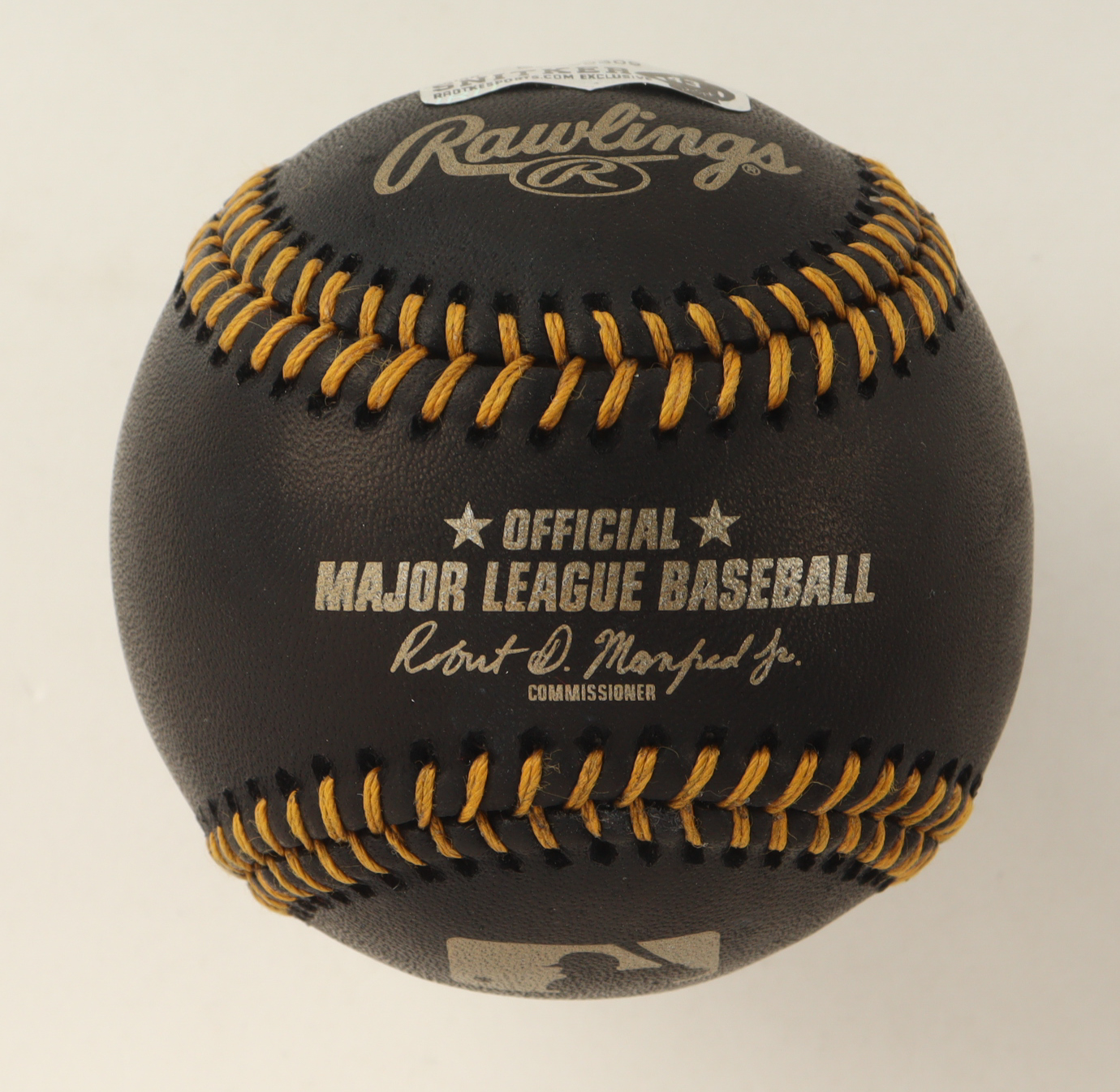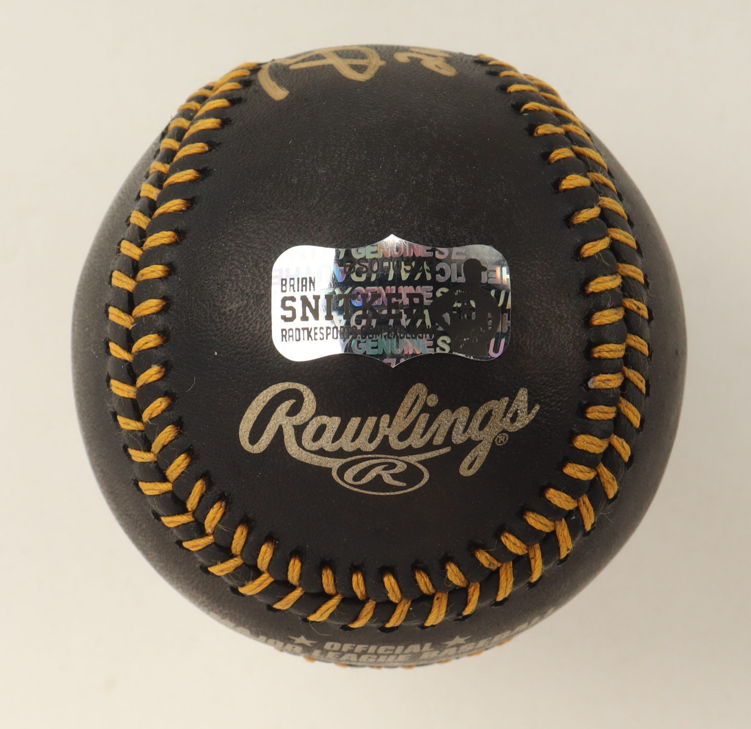 Rawlings Official Major League black leather baseball has been hand-signed and inscribed by Brian Snitker (Atlanta Braves).