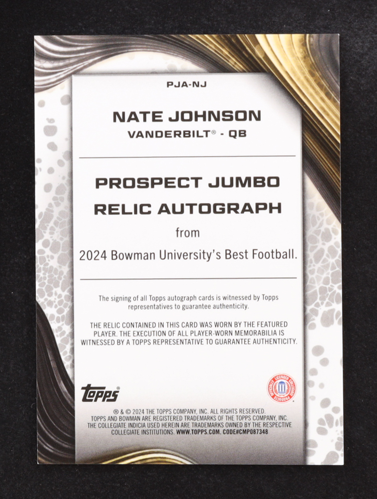 Nate Johnson 2024 Bowman's Best University Prospect Jumbo Relic Autographs #PJANJ RC