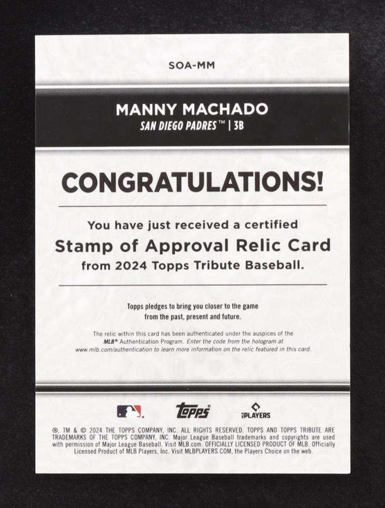 Manny Machado 2024 Topps Tribute Stamp of Approval Relics Blue #SOAMM #093/150