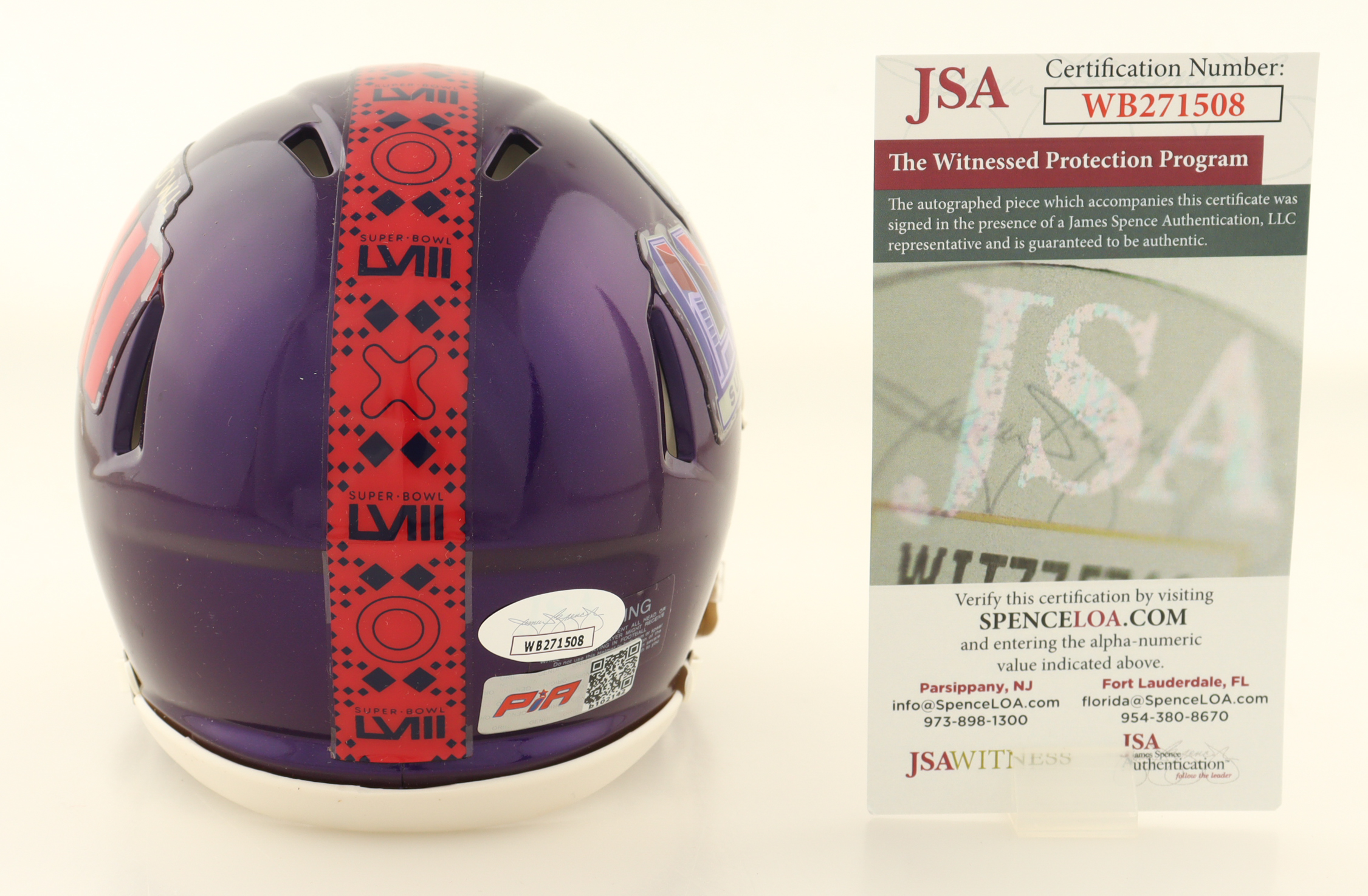 RaShee Rice Signed Super Bowl LVIII Logo Speed Mini Helmet (JSA & PIA)