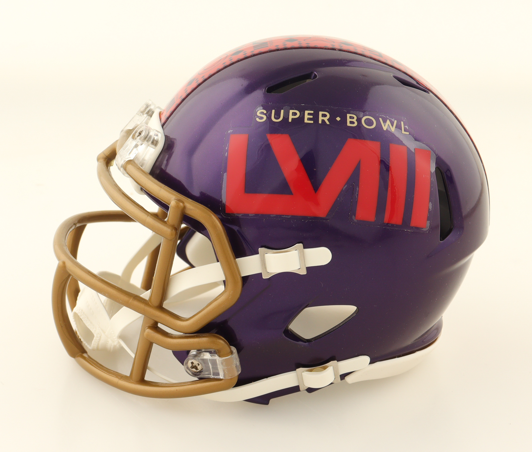 Riddell Super Bowl LVIII logo Speed mini helmet. Hand-signed by RaShee Rice (Kansas City Chiefs)