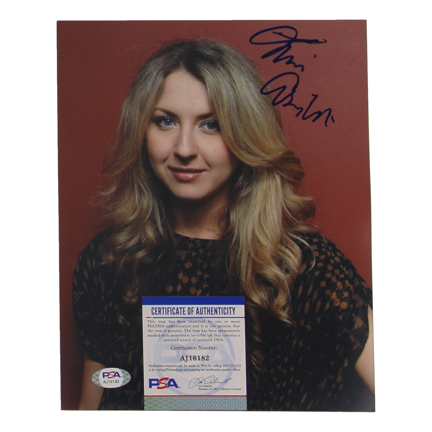 Photo measures approximately 8" x 10" in size. Hand-signed by Nina Arianda.