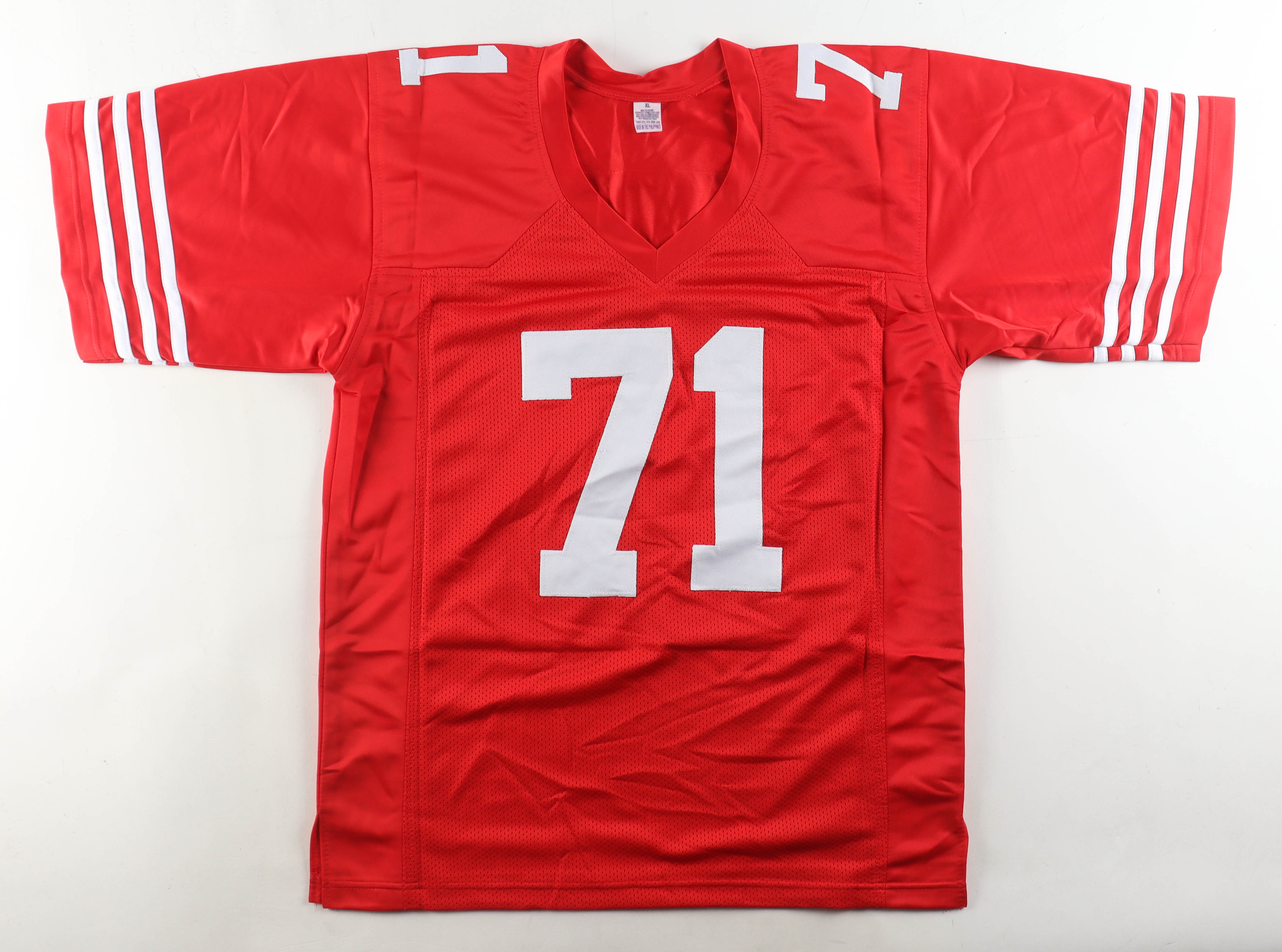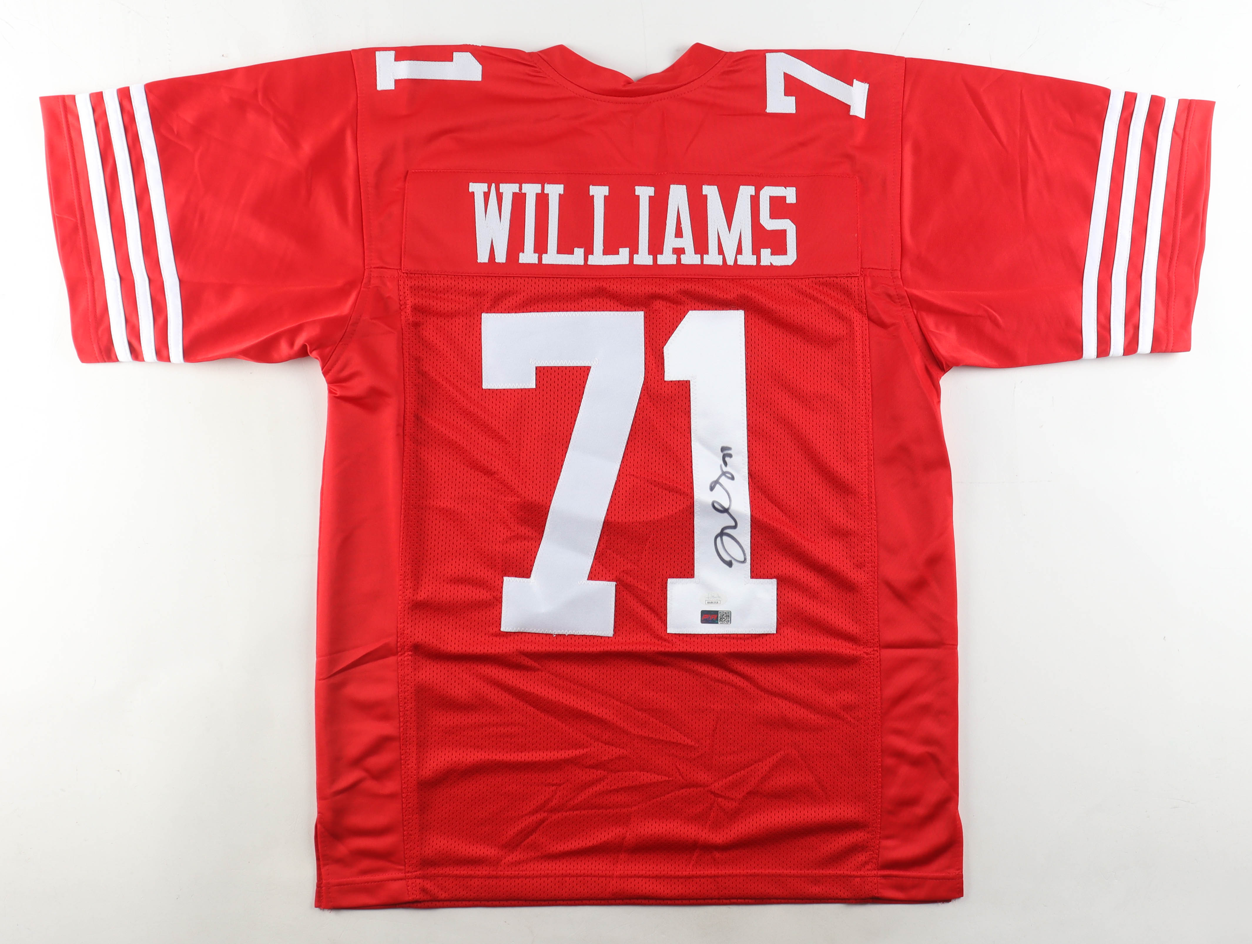 Custom jersey with everything sewn on, size XL. Hand-signed by Trent Williams.