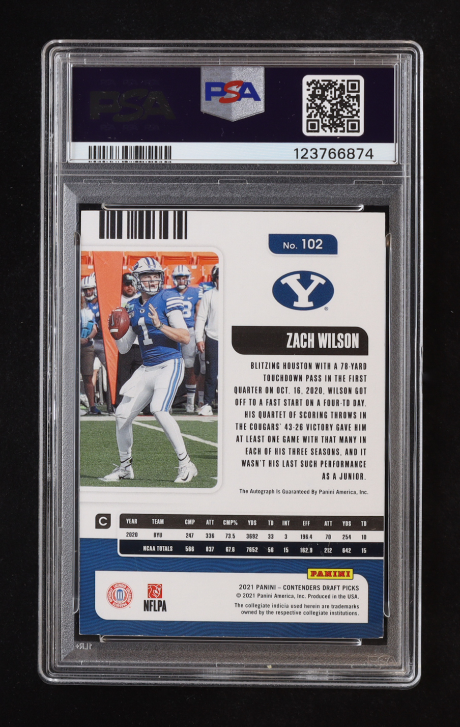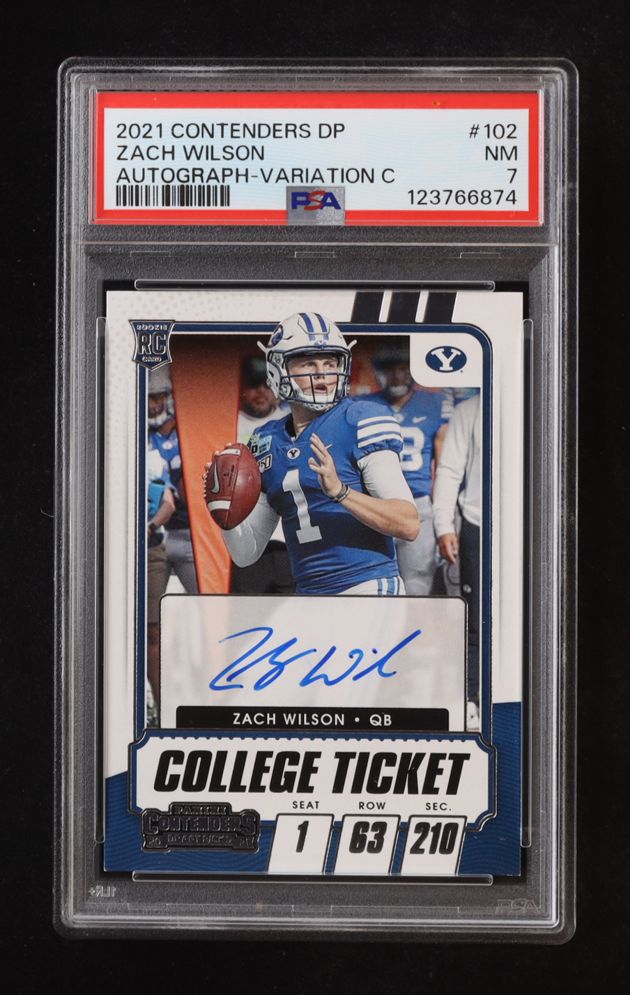 Zach Wilson 2021 Panini Contenders Optic Rookie Ticket Variation Autographs #102 RC (PSA 7)